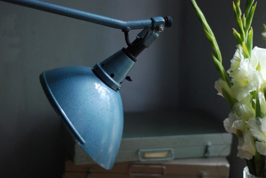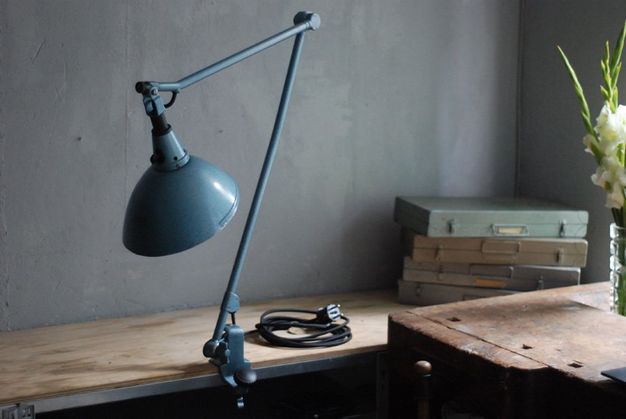 Midgard blue clamp lamp in original condition.
