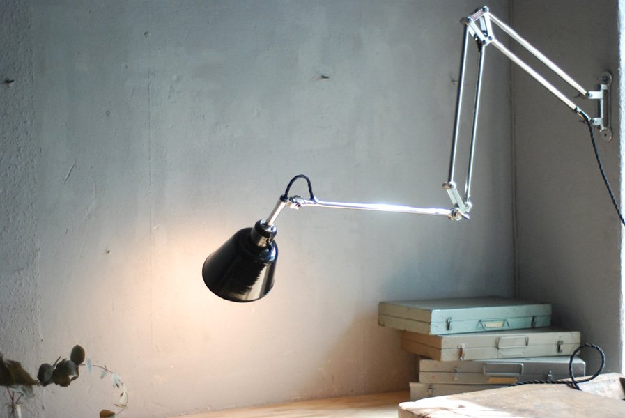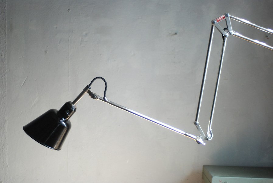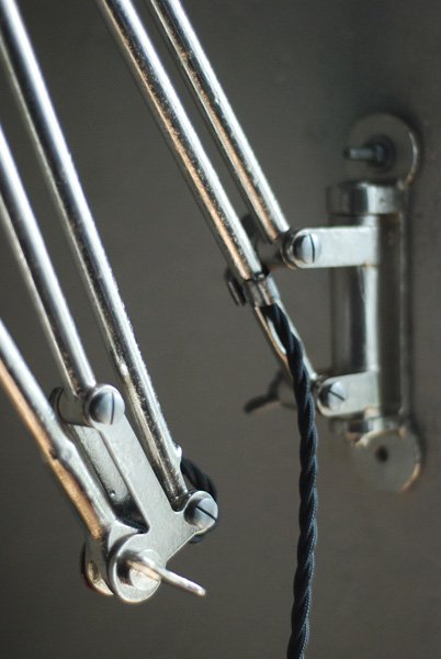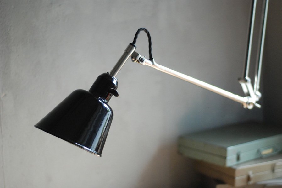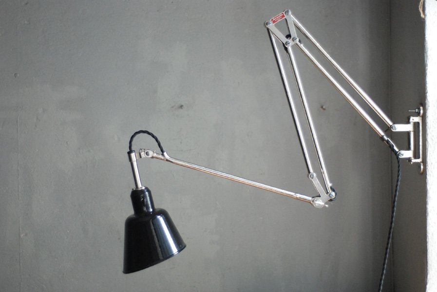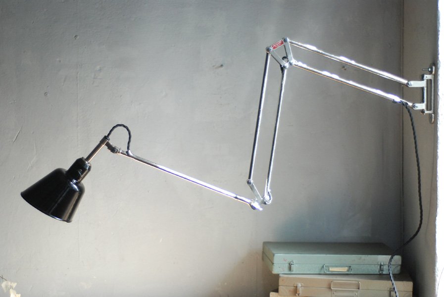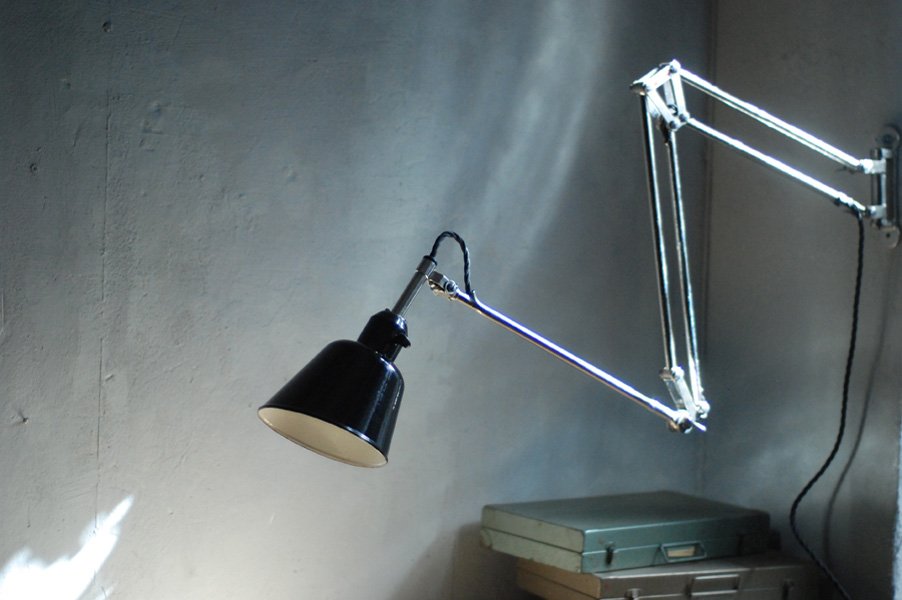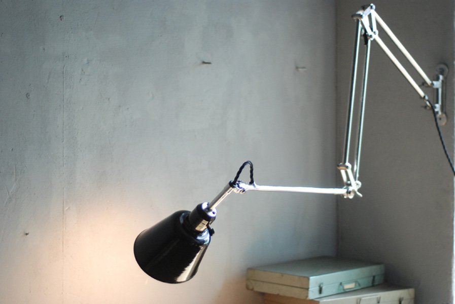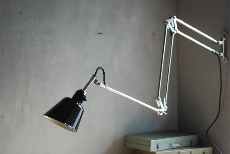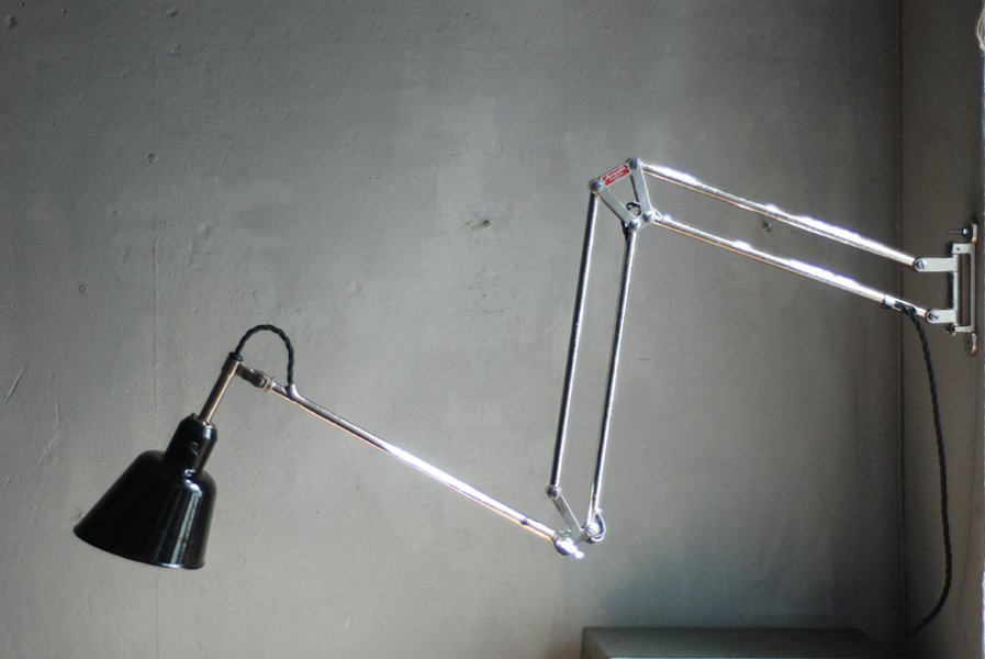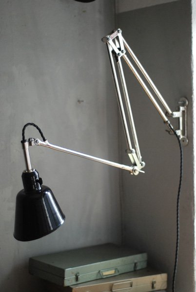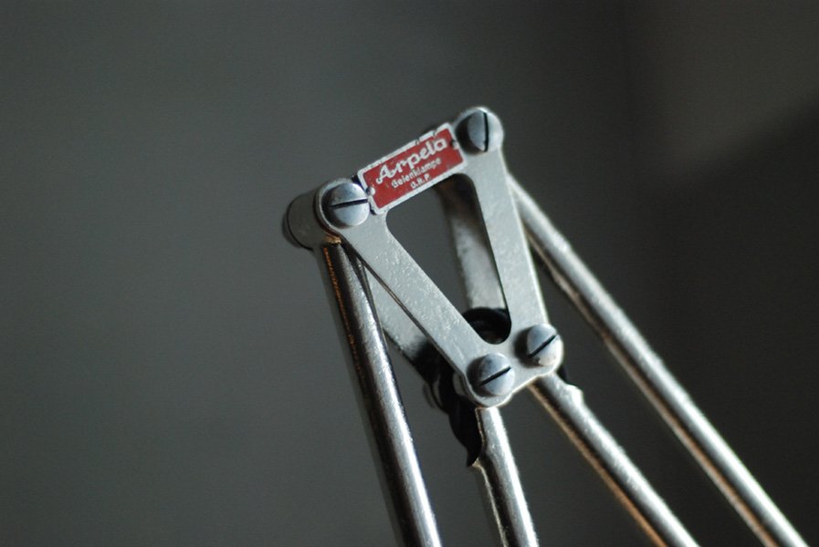 The lamp is marked with “Arpela Gelenklampe D.R.P.” (before the war) and ARP on the wall mounting.