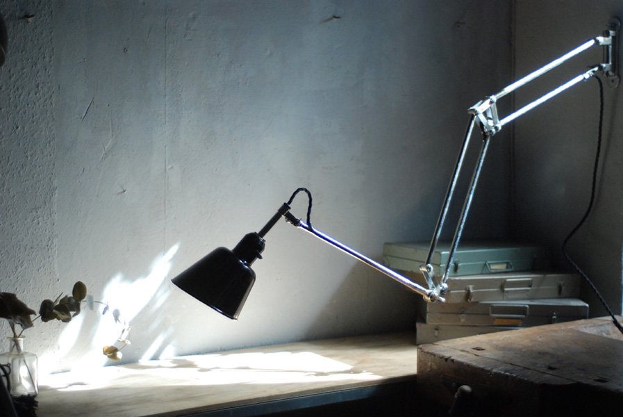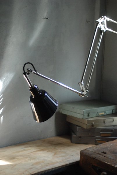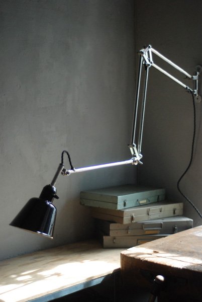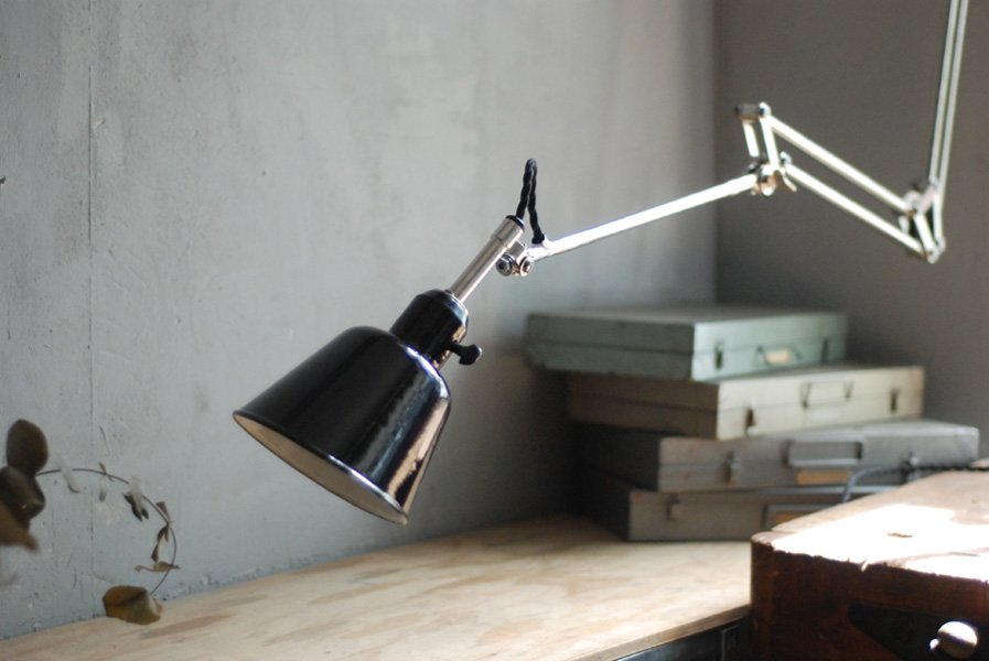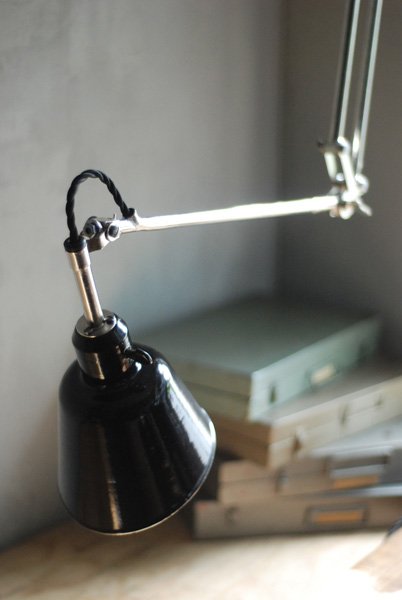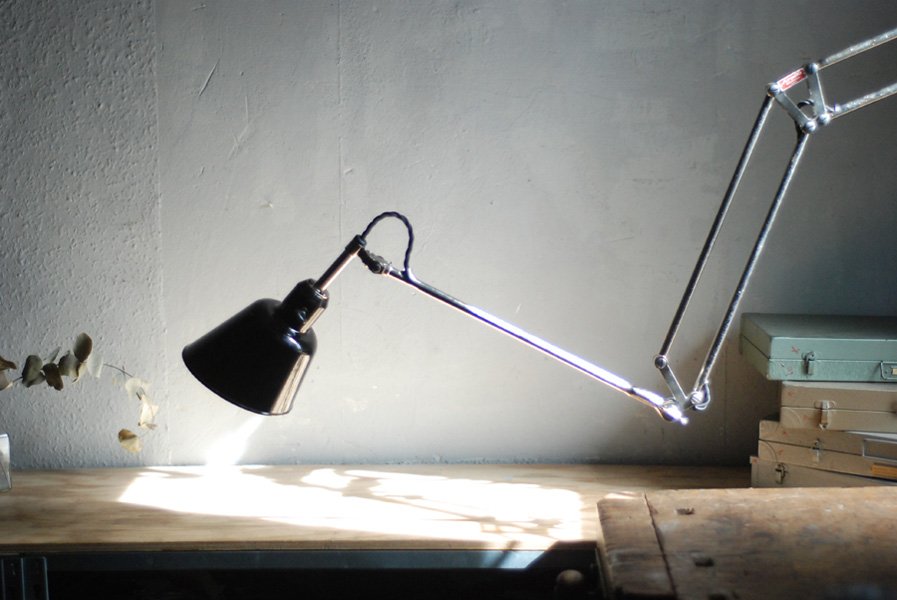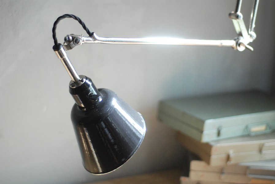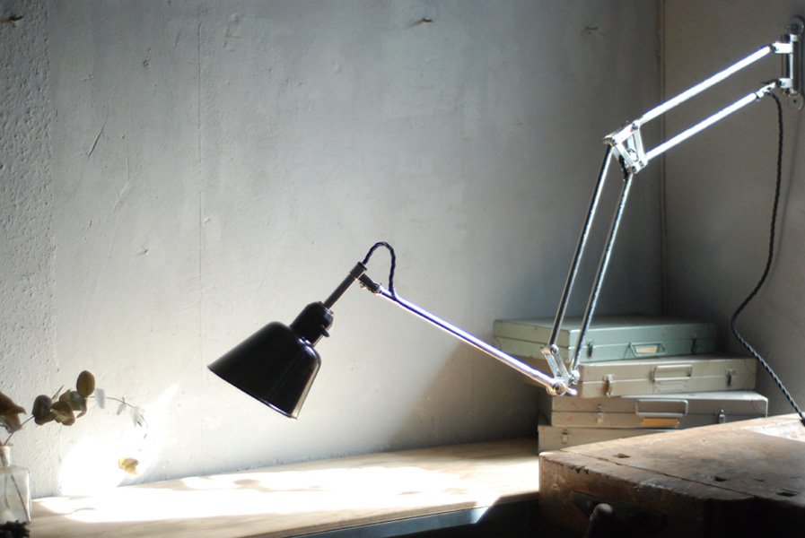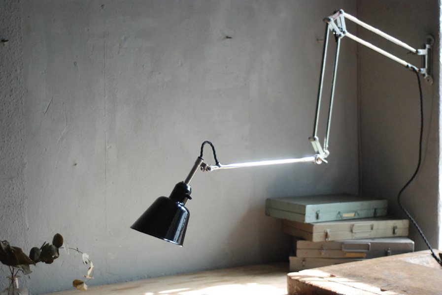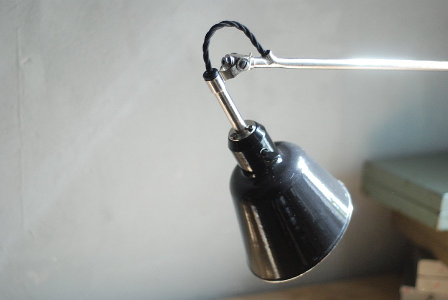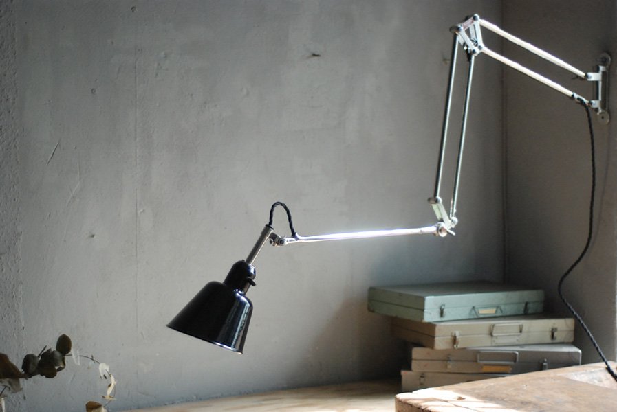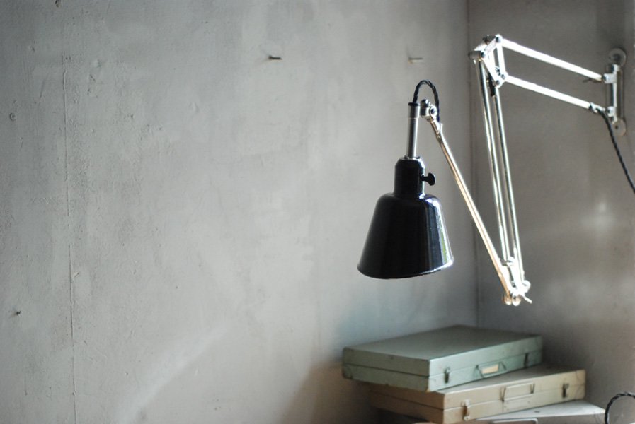 The lamp is marked with “Arpela Gelenklampe D.R.P.” (before the war) and ARP on the wall mounting.