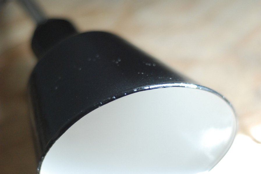 The black (non original) clamping lampbase can be easily fixed on the table surface/table top and with the (non original) wall mounting and screws at the wall.