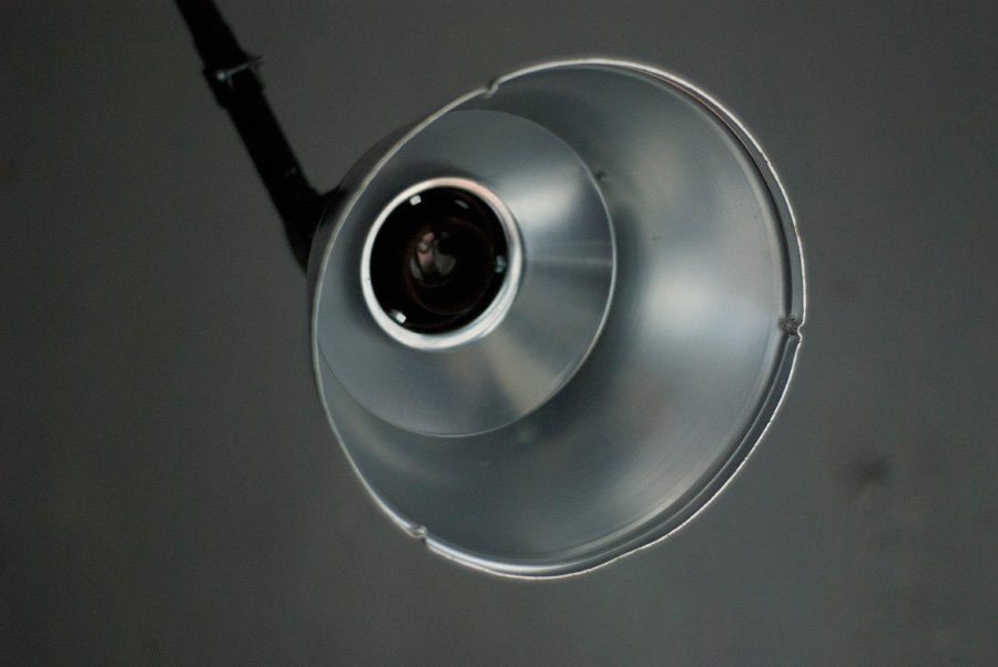 The lamp is used and has marks of time. The shade make of aluminium has small dents.