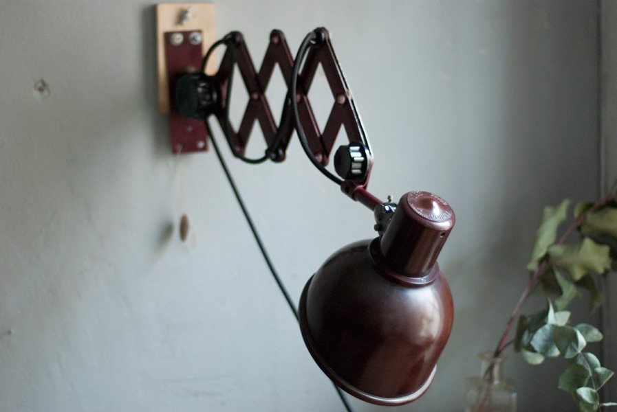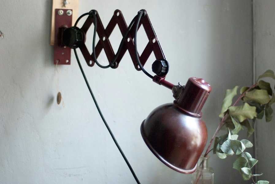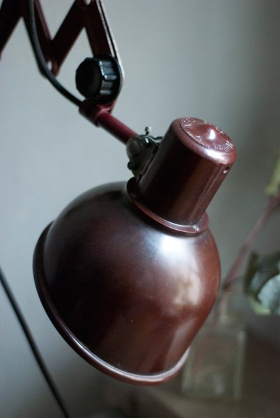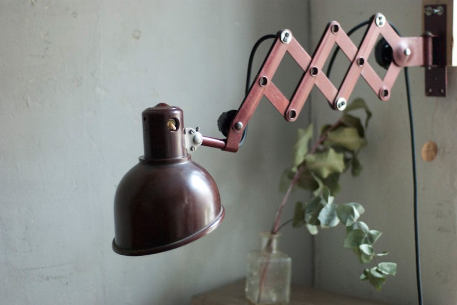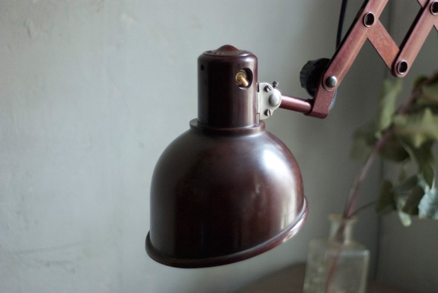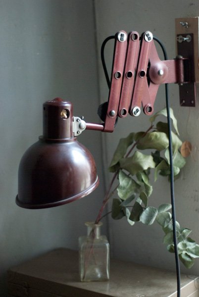 The lamp has signs of wear consistent with its age and use. The scissor has a nice patina.