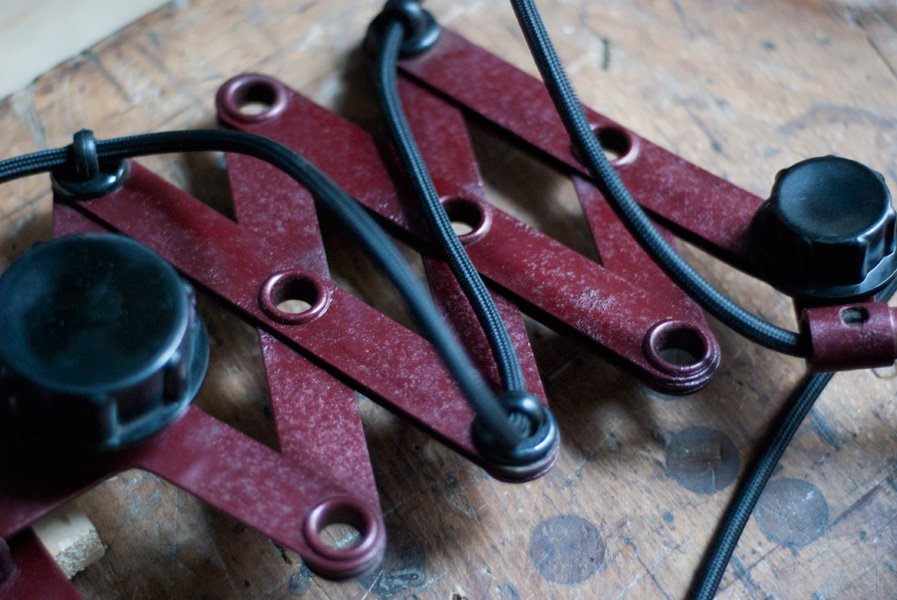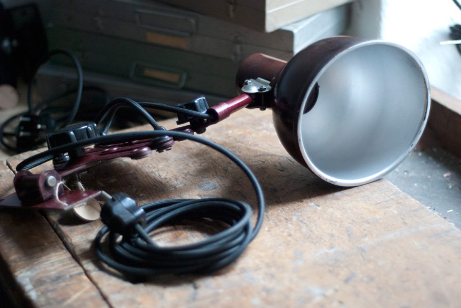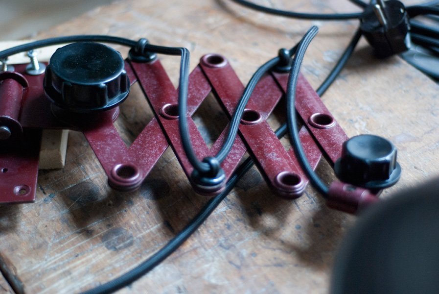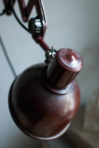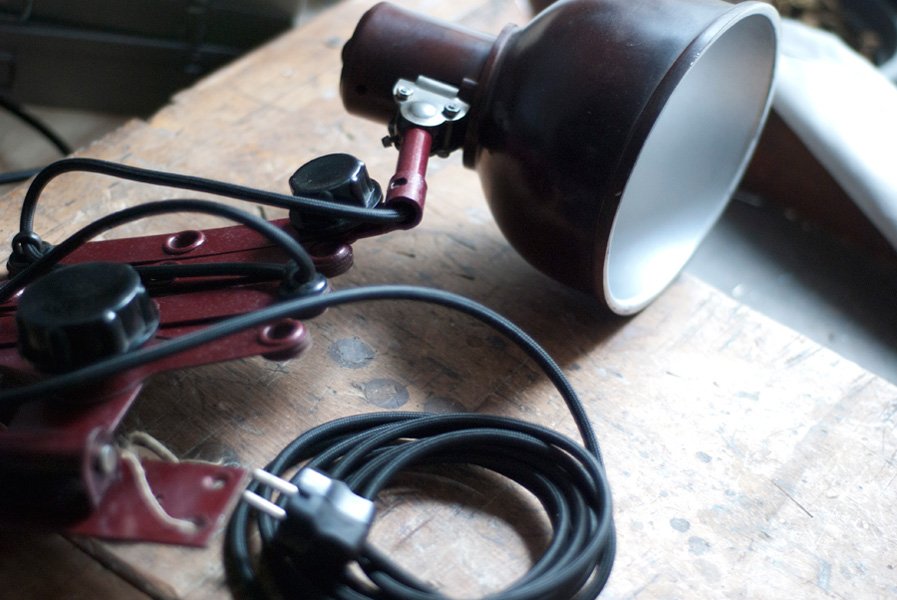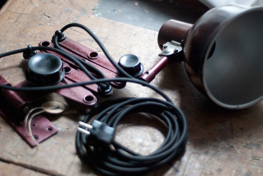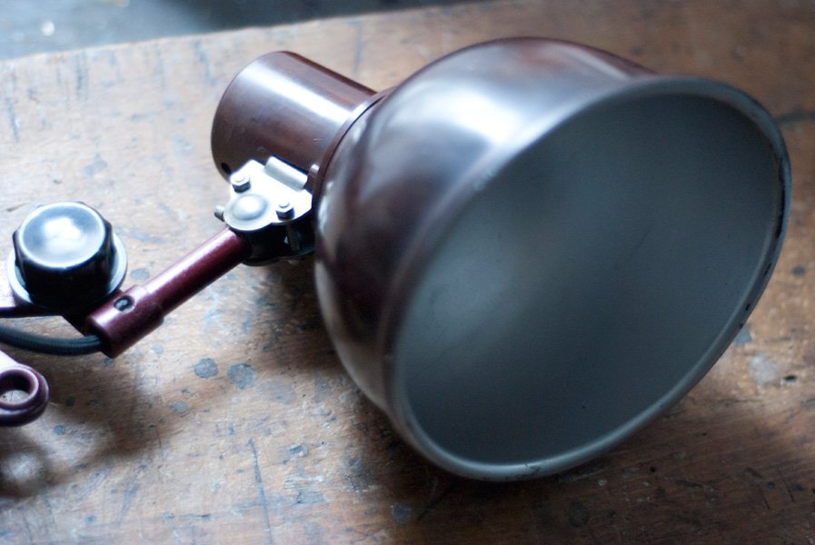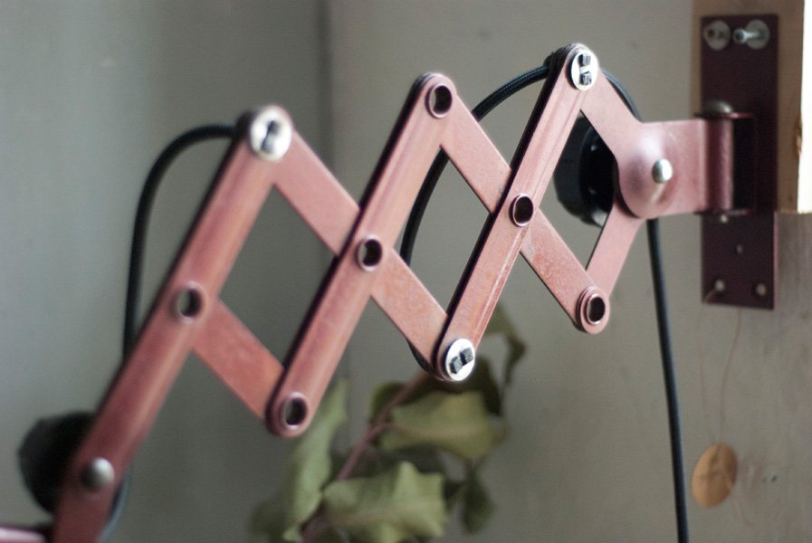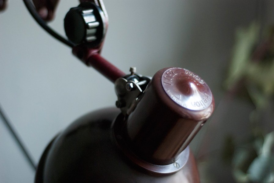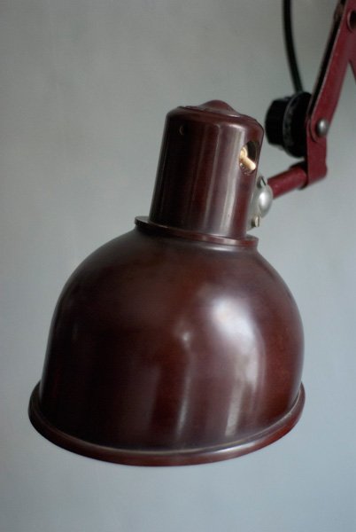 After the thorough dismantling and cleaning of all elements, the lamp was polished, painted in metallic red and rebuilt again.