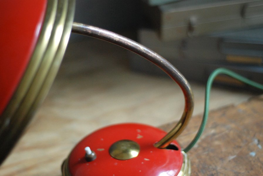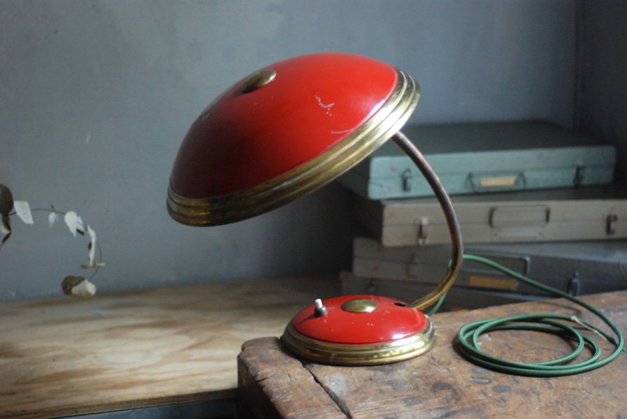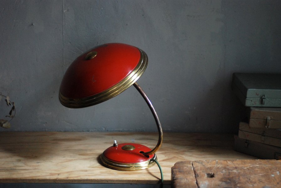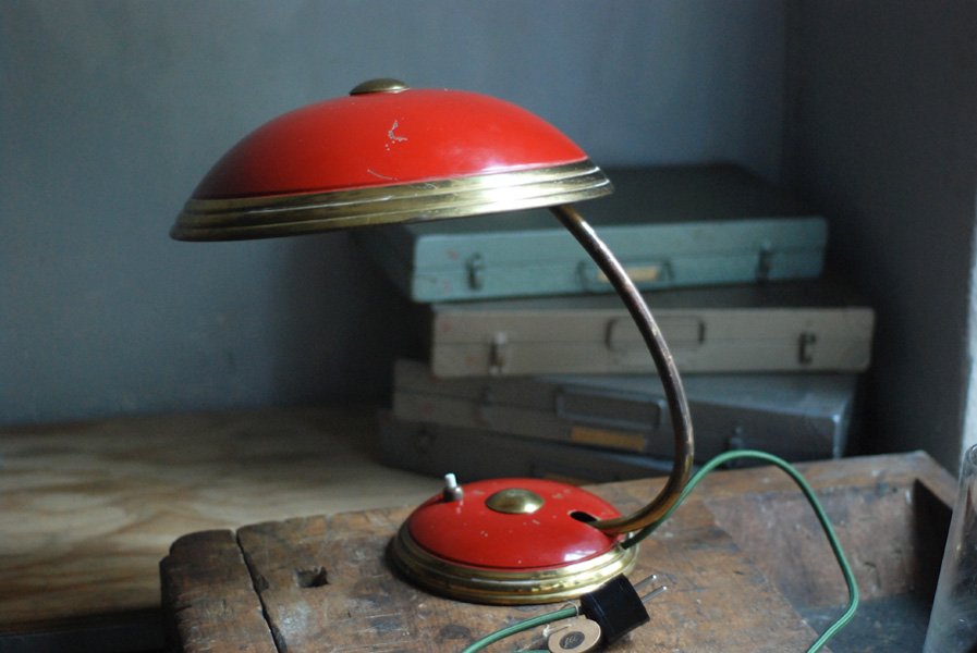 Helo big red desk lamp in original condition with nice patina