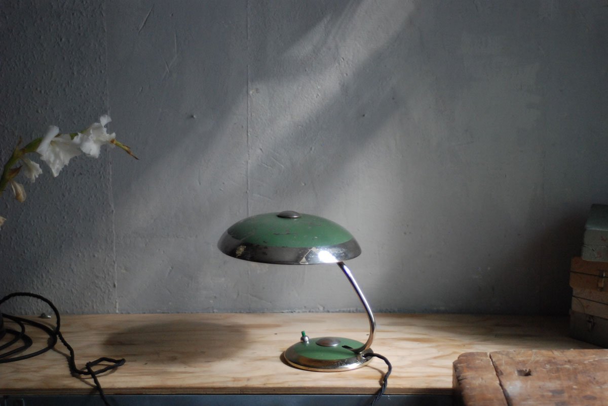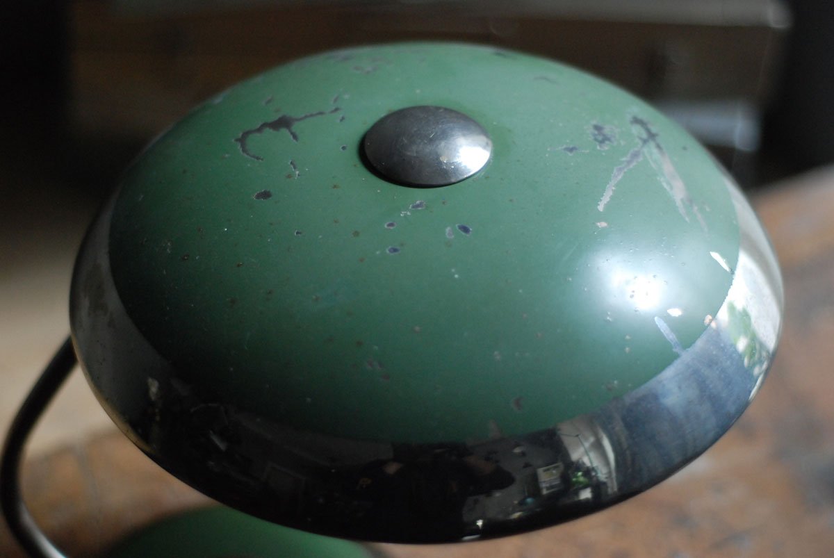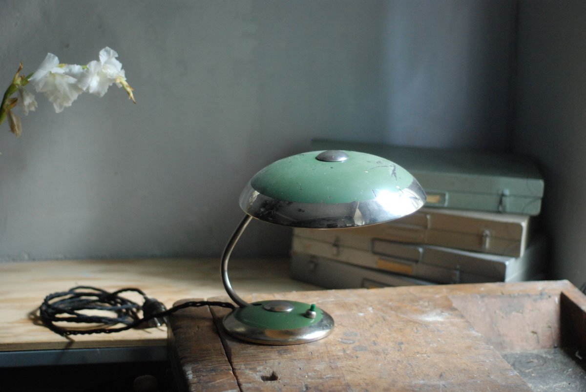 Helo small desk lamp in original condition with nice patina Dimensions (approx) Shade diameter 24cm Base diameter 15cm Height 24cm Cord length 225cm Ref 1905C0575