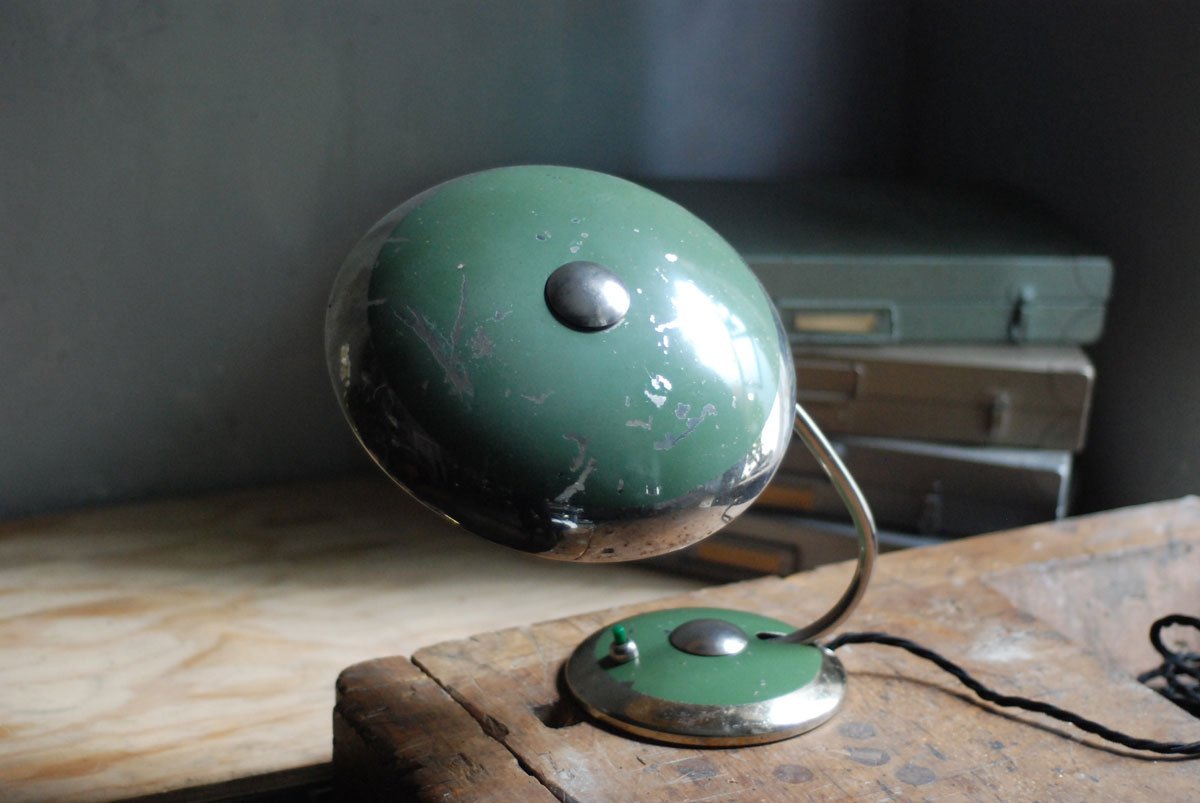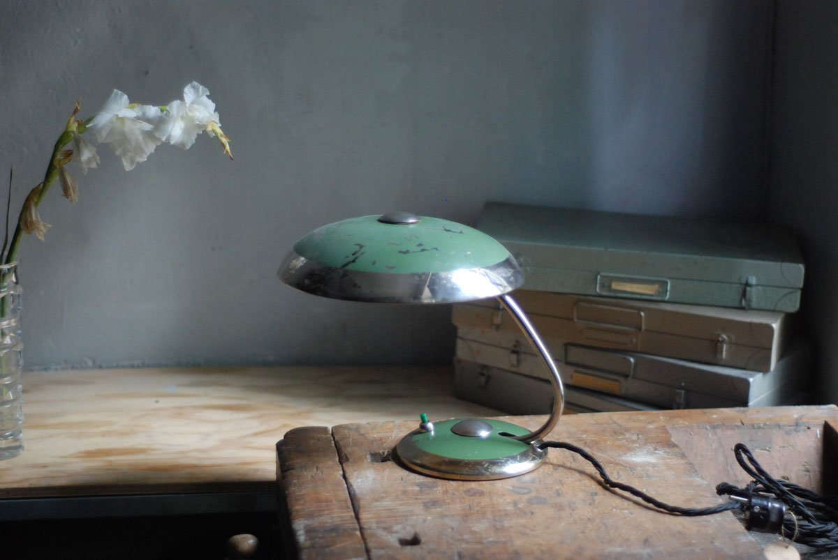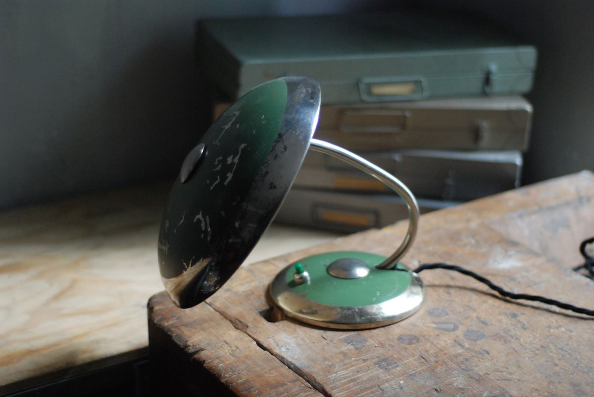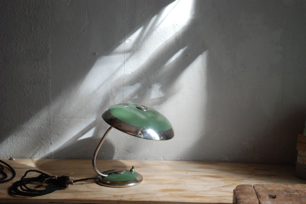 Helo small desk lamp in original condition with nice patina Dimensions (approx) Shade diameter 24cm Base diameter 15cm Height 24cm Cord length 225cm Ref 1905C0575