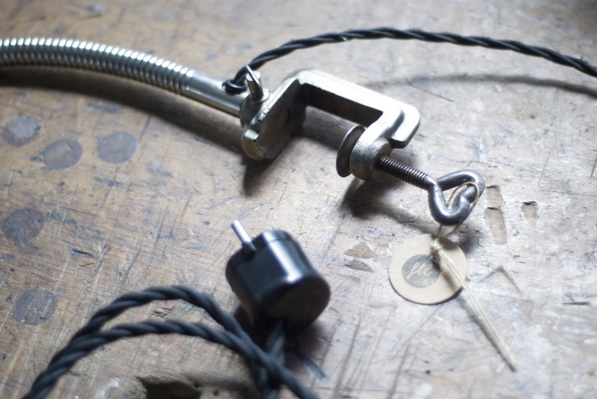 The light is operated by a rotary switch located on the lamp socket and by a switch on the cord.