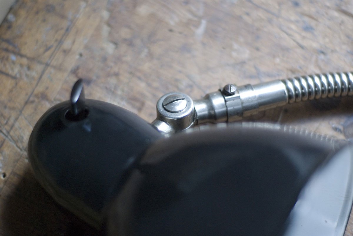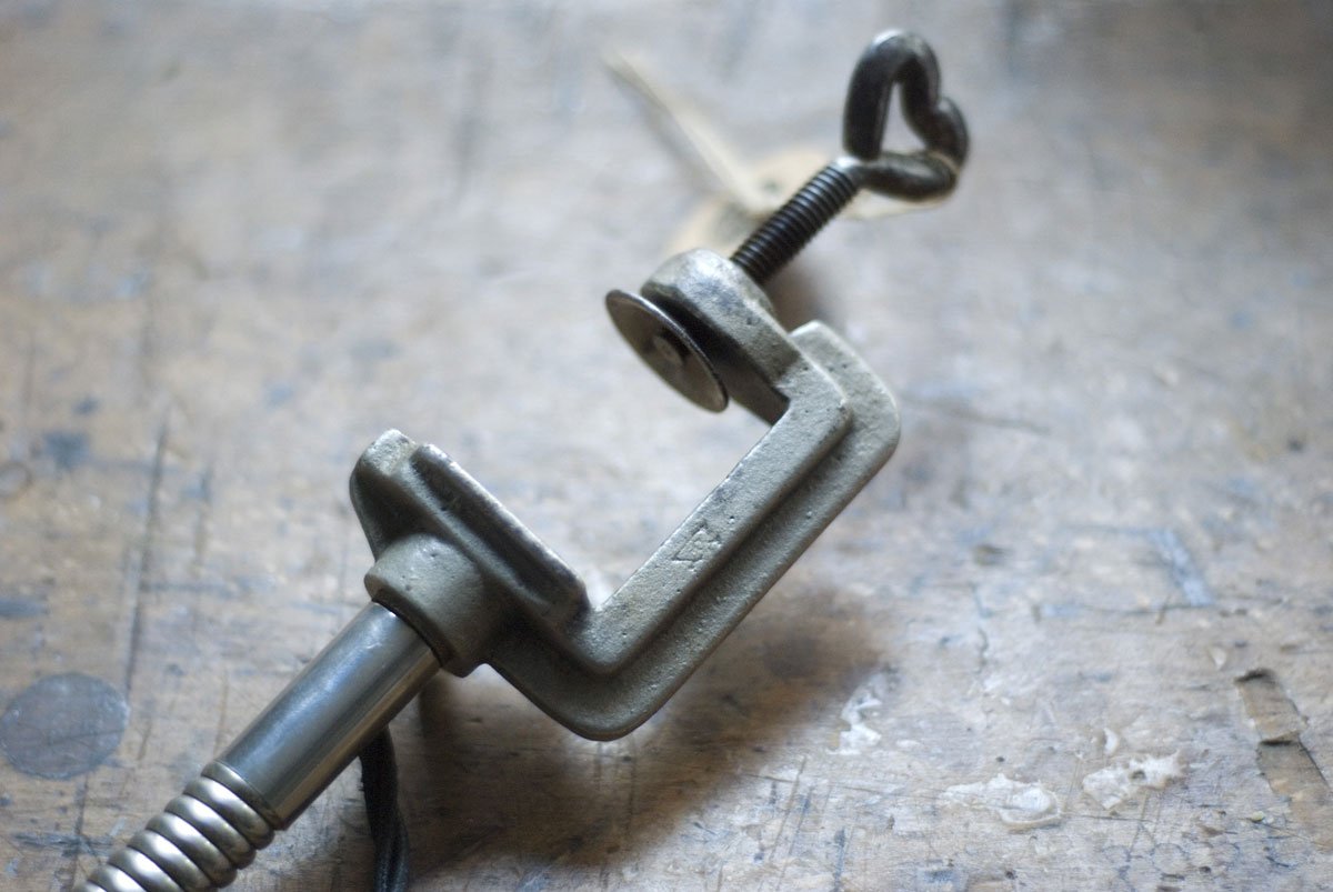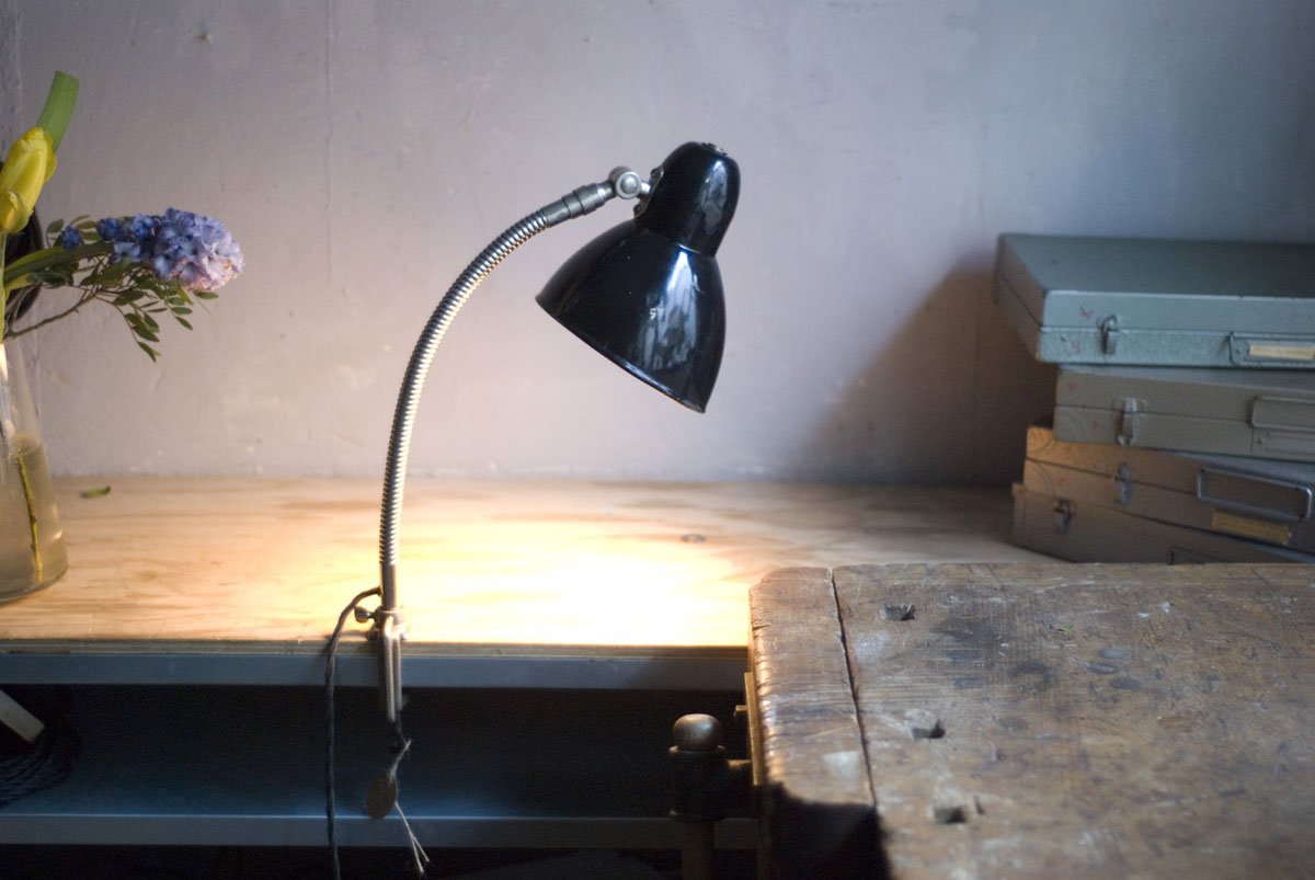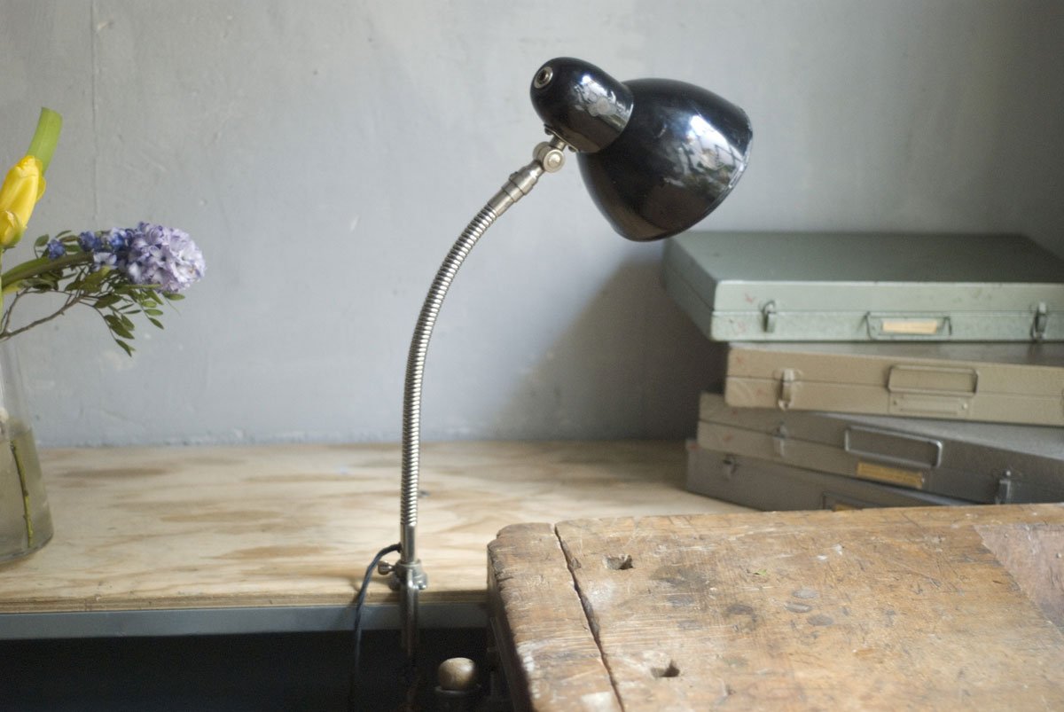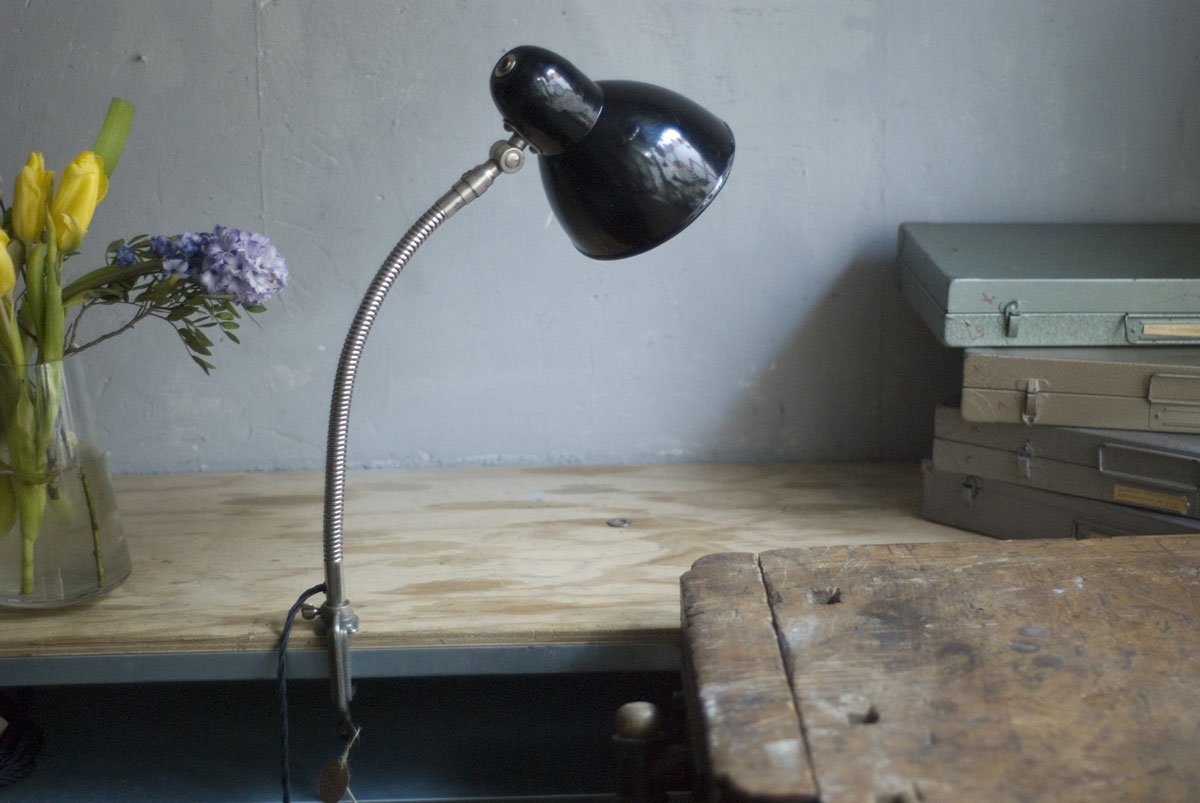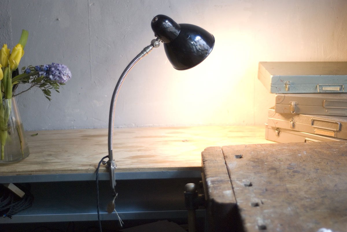 Rare Jacobus clamp lamp with enameled shade