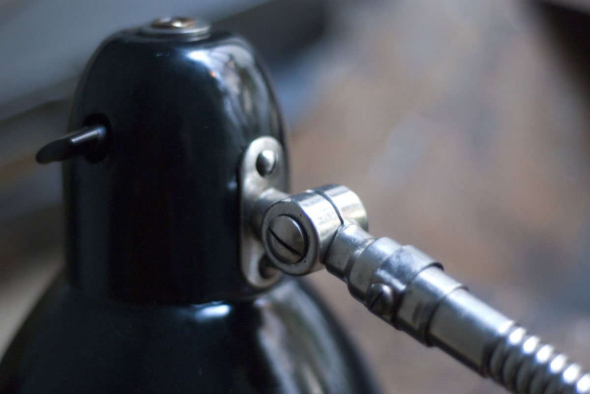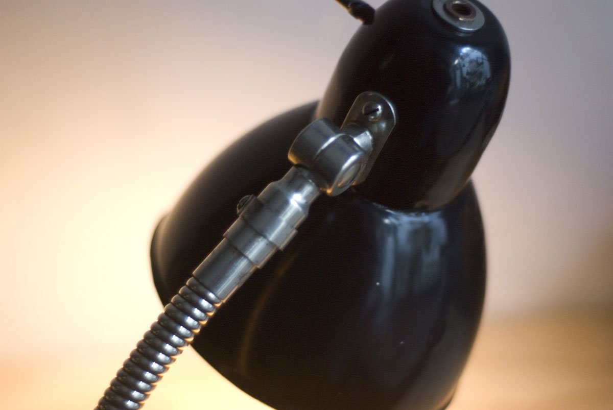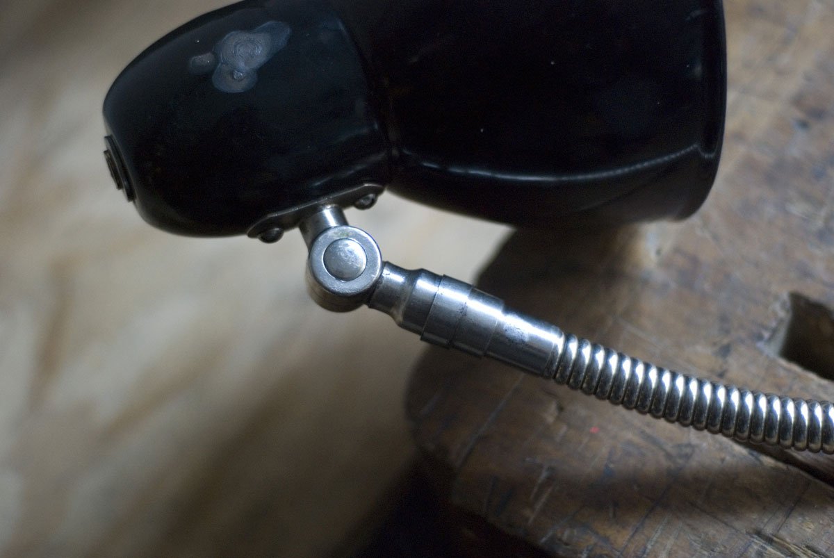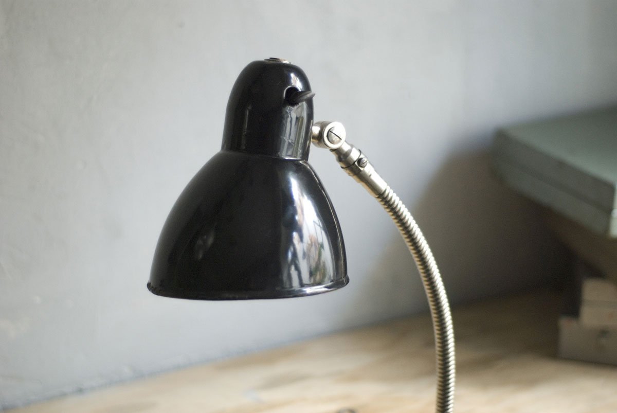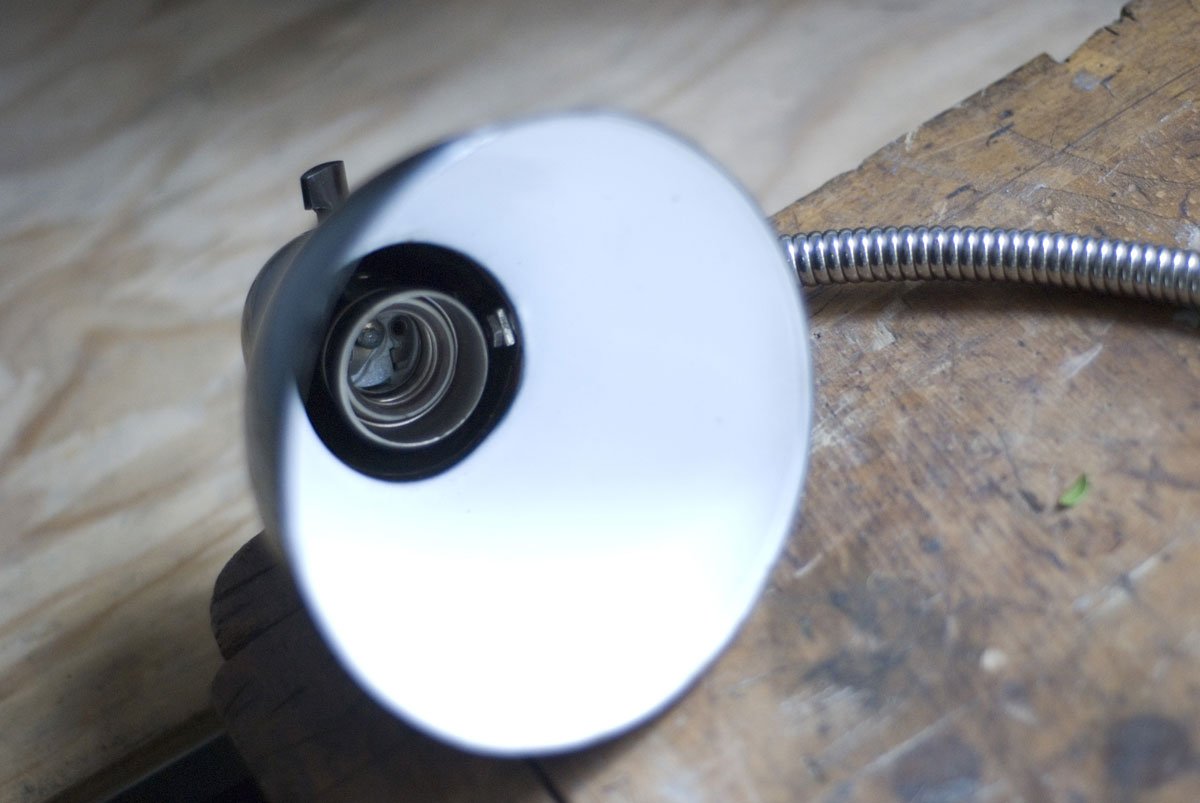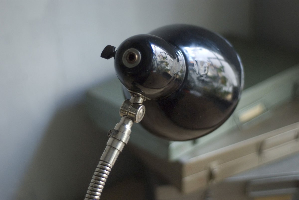 Rare Jacobus clamp lamp with enameled shade