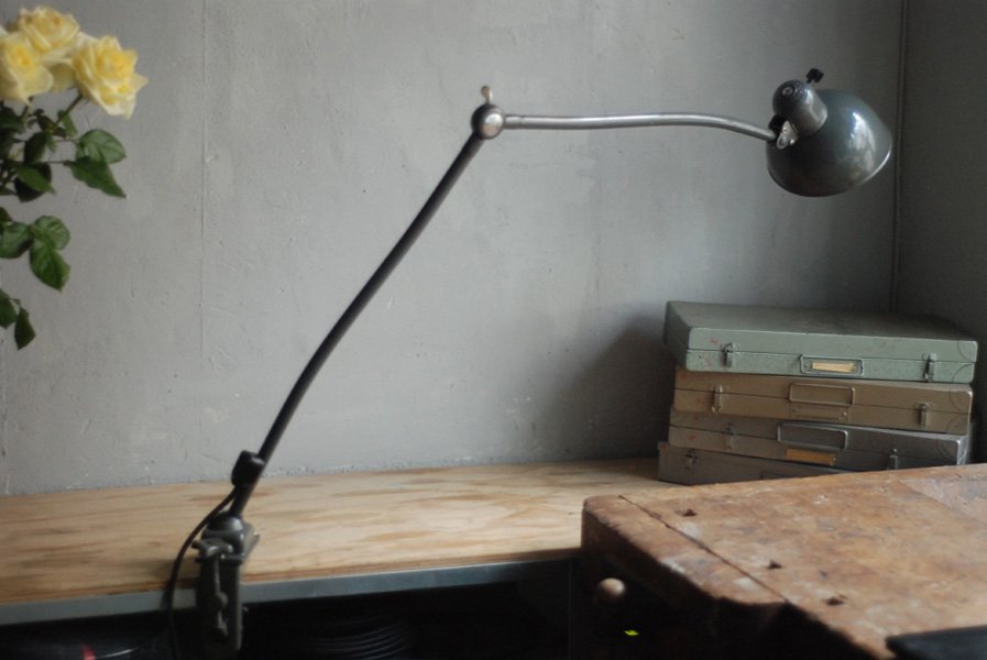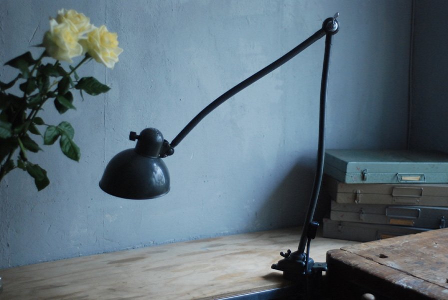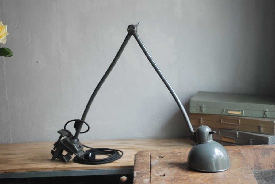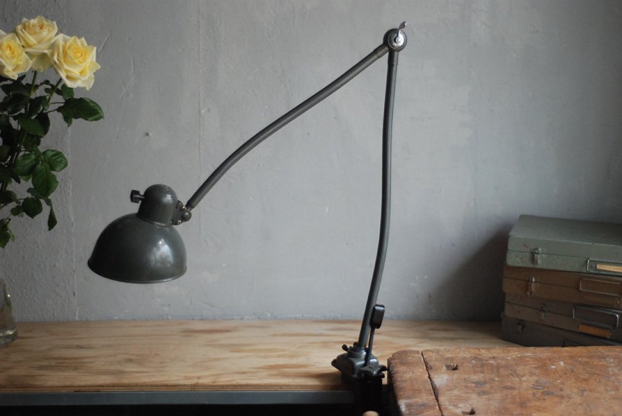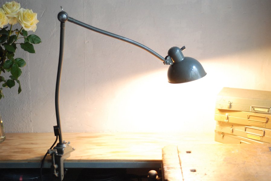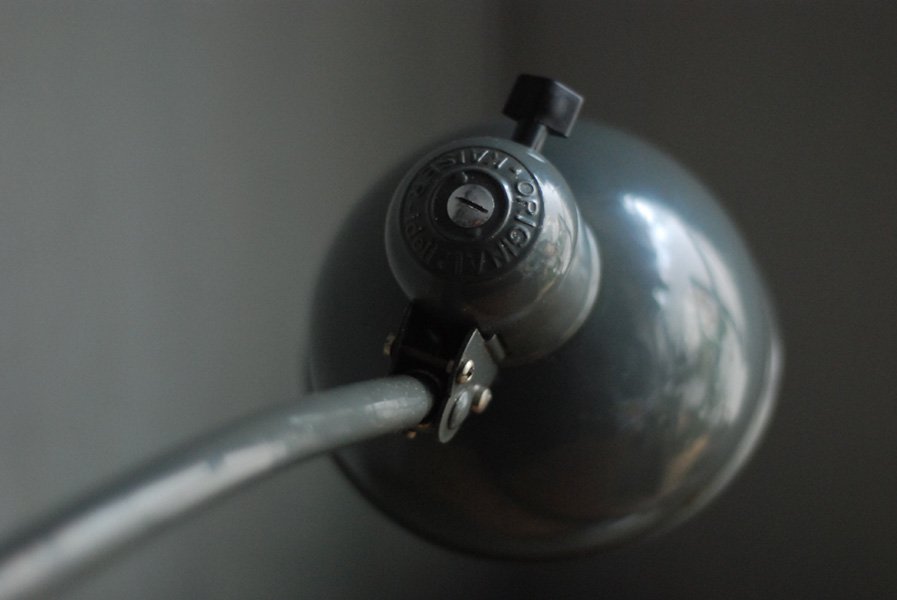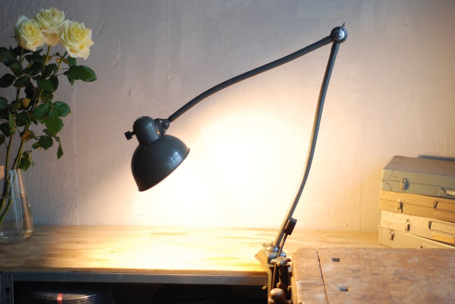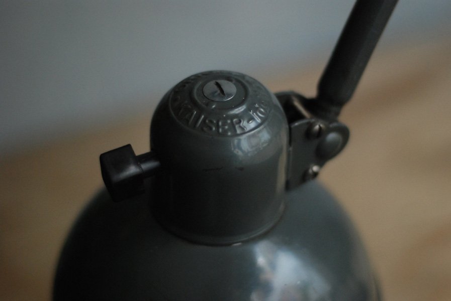 Kaiser Idell 6726 grey architect lamp in original condition.The company Kaiser & Co. Leuchten KG was founded in 1895 by Hermann Kaiser, a silversmith and industrial designer. Christian Dell designed lamps for the lamp factory Kaiser u. Co. a wide range of luminaires (more than 500 models) with the idea to create standardized and interchangeable lamp parts. The lamps Idell (combination of ‘Dell’ and ‘Idea’), designed by the designer Christian Dell, are now regarded as design classics – a timeless ideal with a simple and clear avant-garde design, fine materials, and a basic functionality.