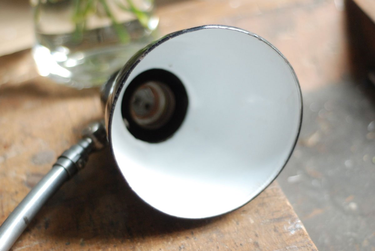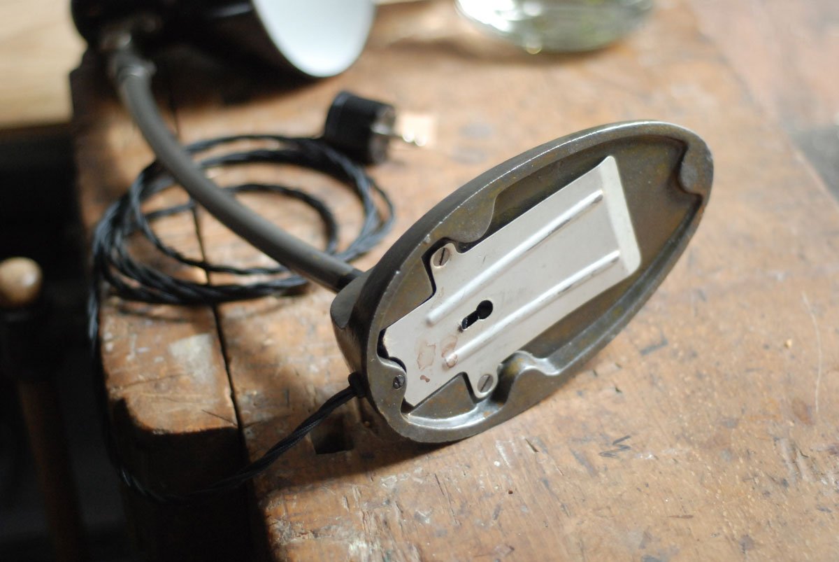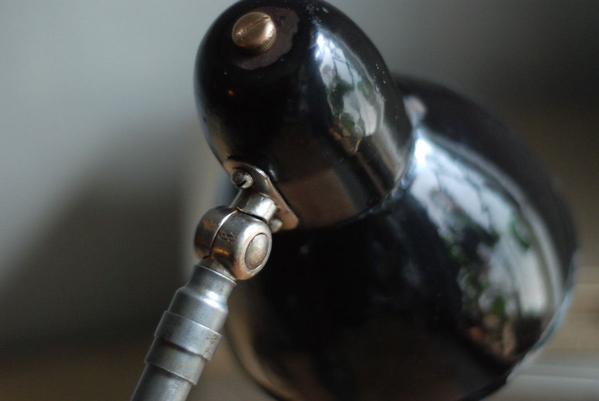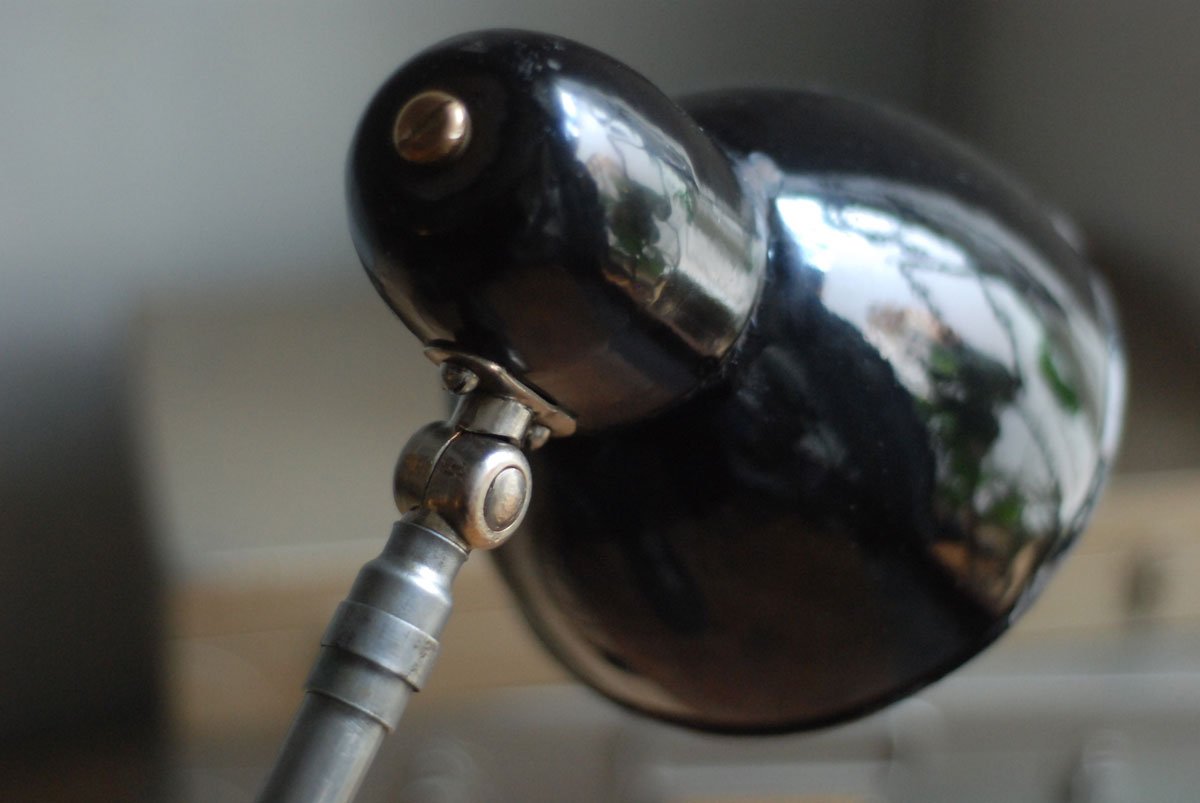 Lucida desk lamp with enameled shade.After the thorough dismantling of all elements, the lamp was cleaned and rebuilt again.