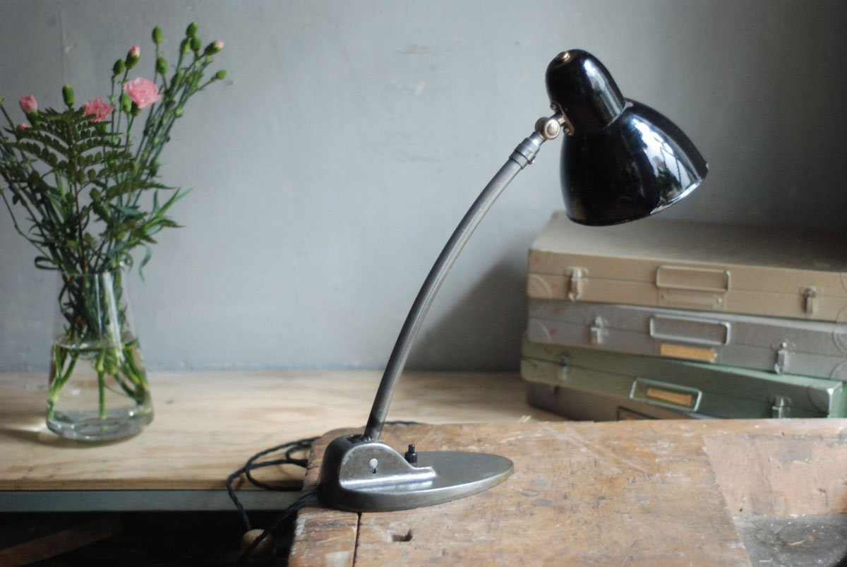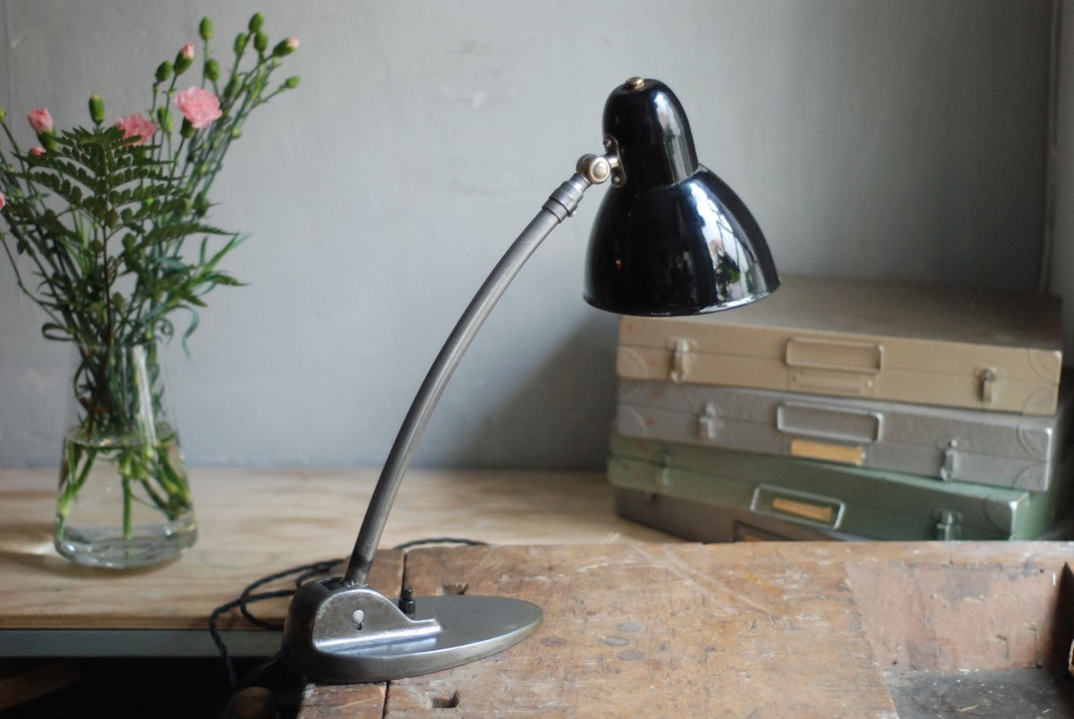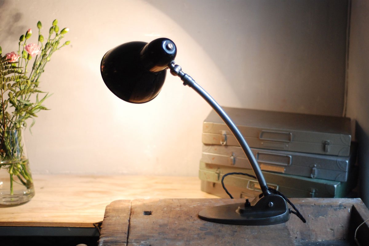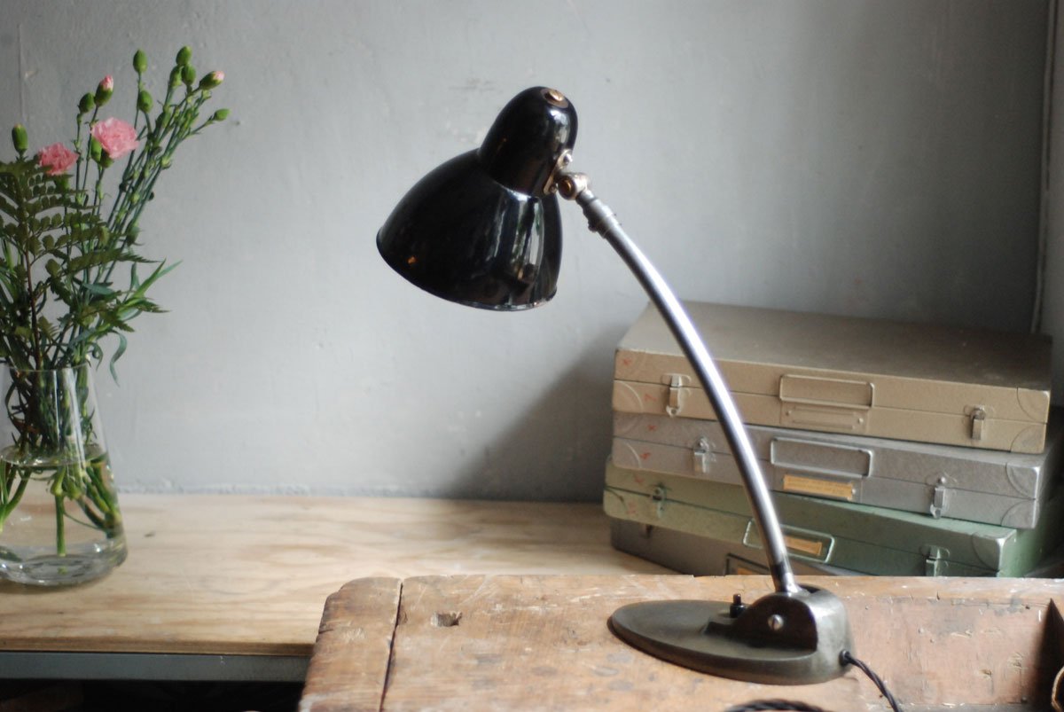 Lucida desk lamp with enameled shade.After the thorough dismantling of all elements, the lamp was cleaned and rebuilt again.