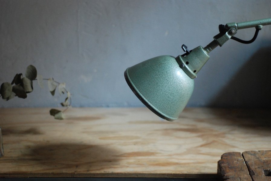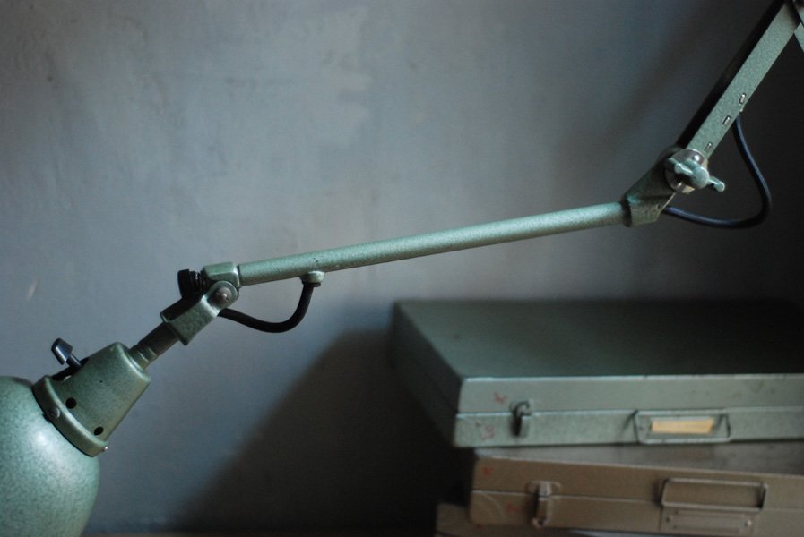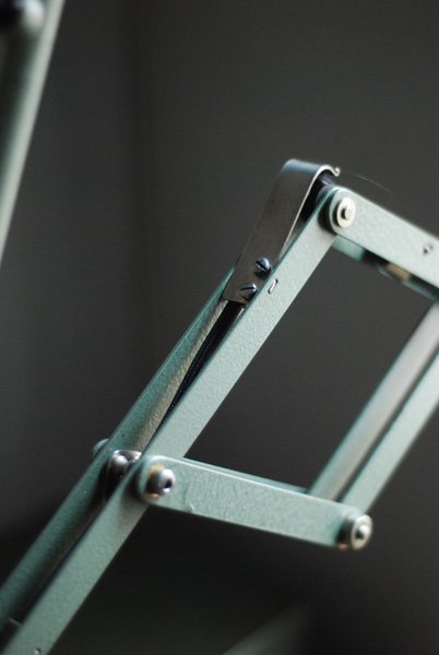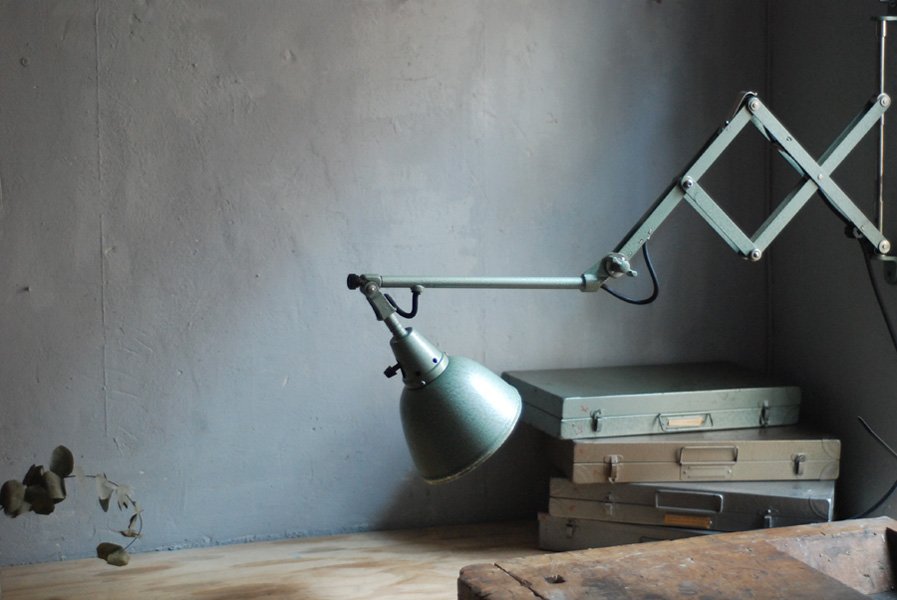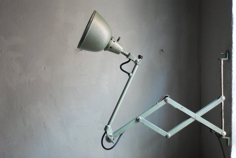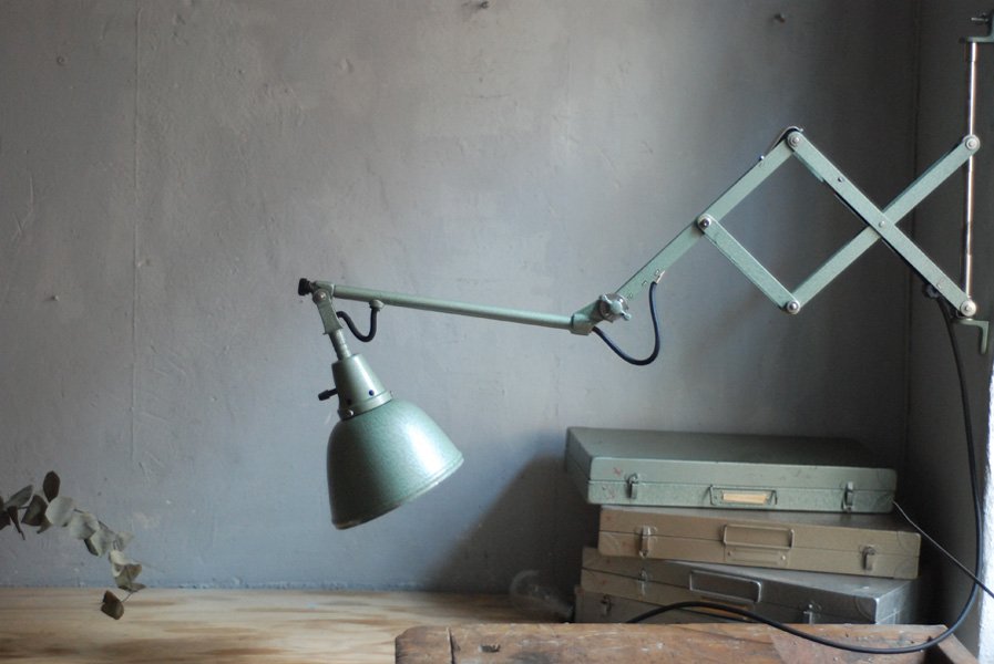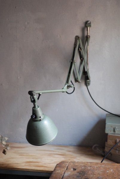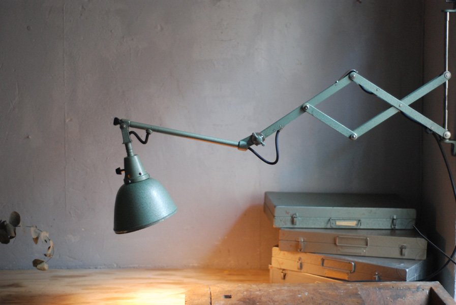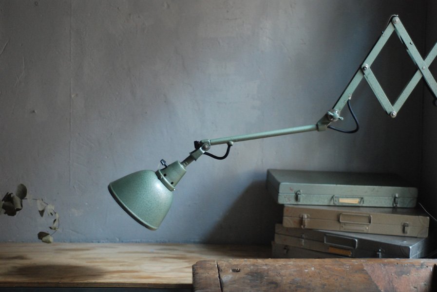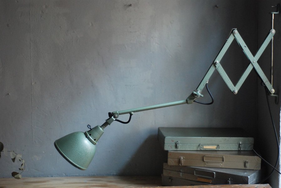 Midgard 110 vintage scissor lamp with original green blue paint