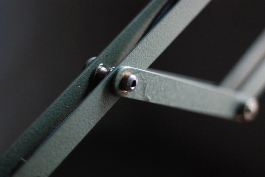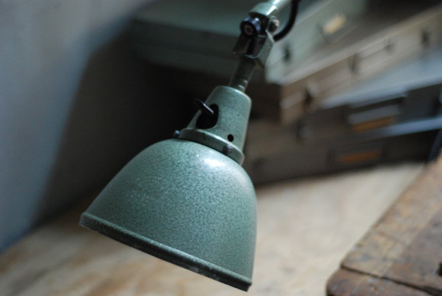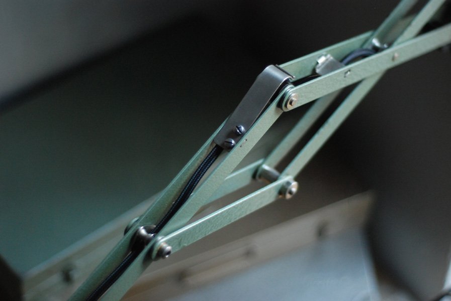 Midgard DRGM DRP vintage scissor lamp mod. 110 with original green blue paint