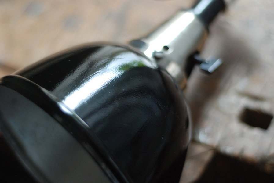 of all elements, the lamp was polished nickel-plated and rebuilt again. All the small parts have been cleaned, polished, oiled.