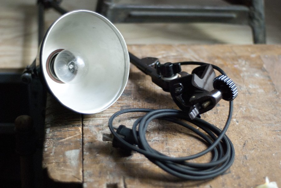 The light is operated by a rotary switch located on the original bakelite lamp socket.