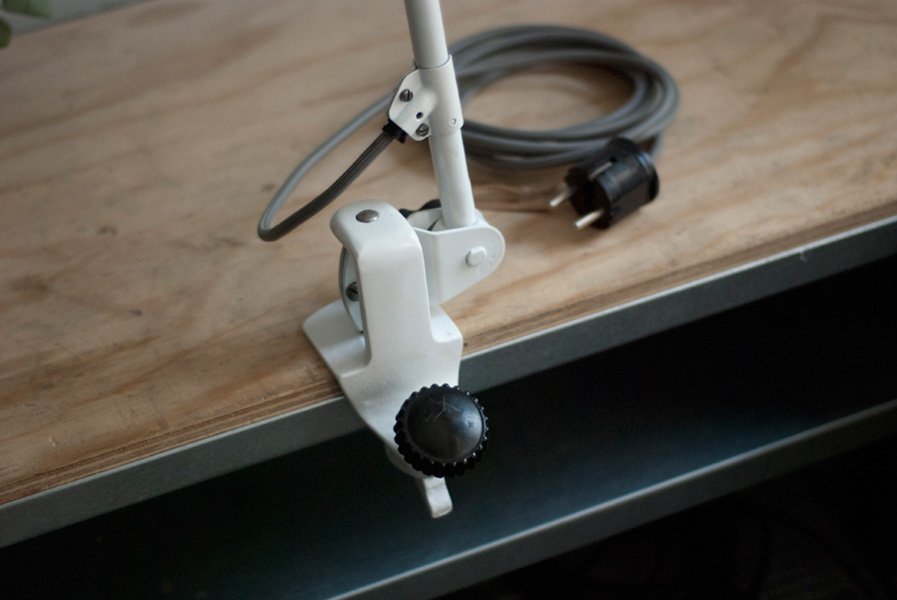 The rare clamping lampbase can be easily fixed on the table surface/table top.