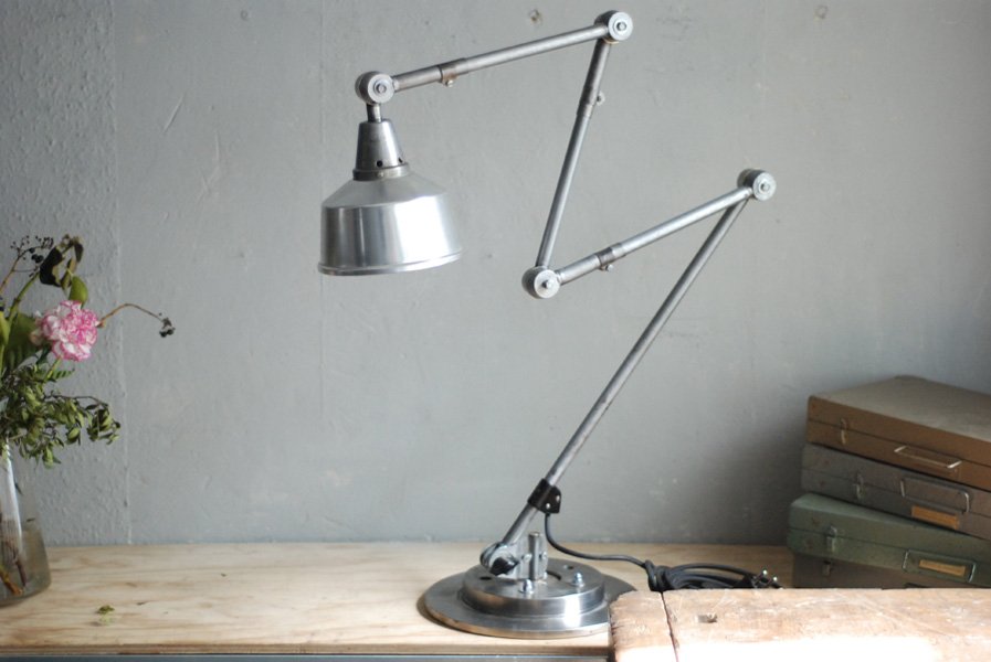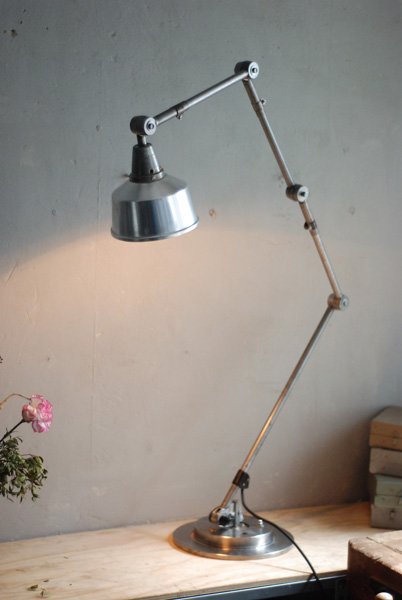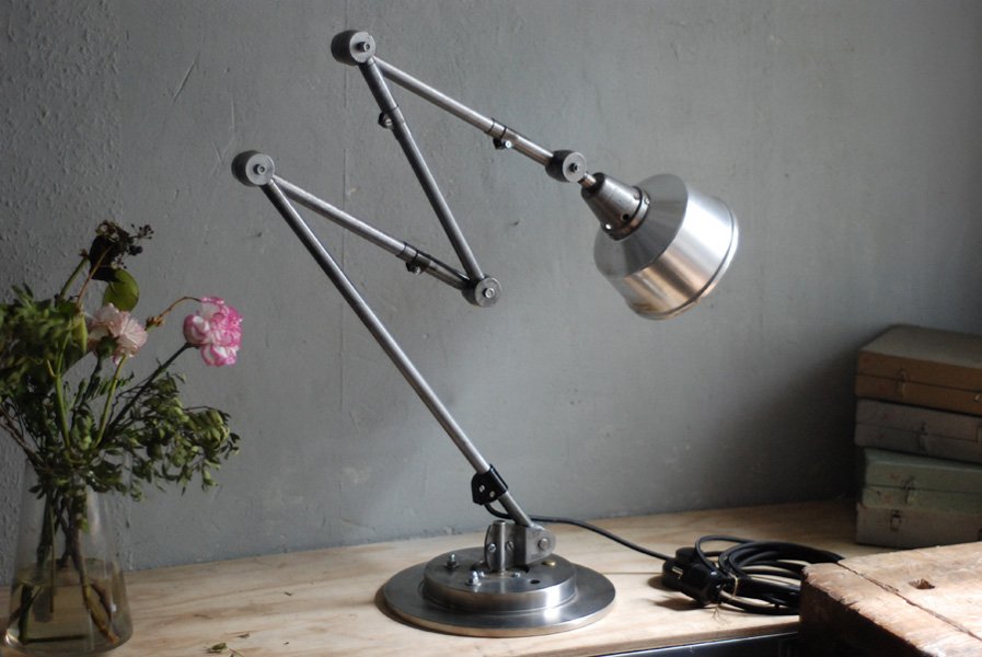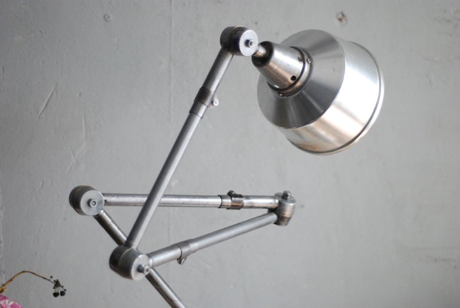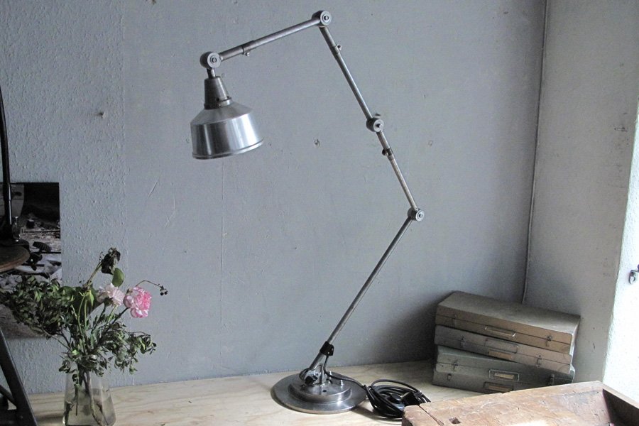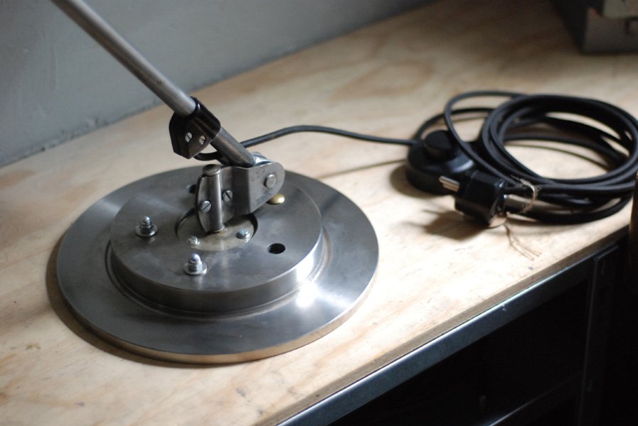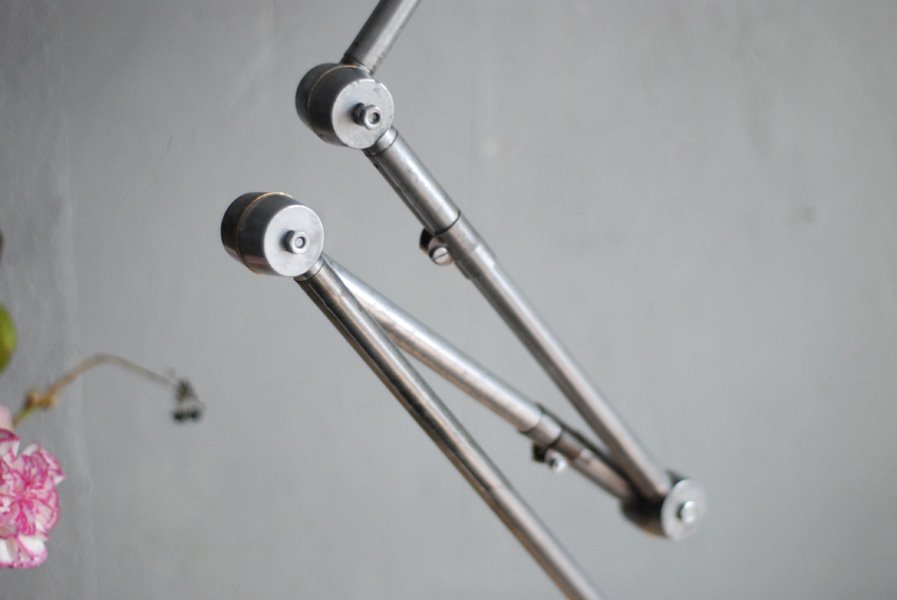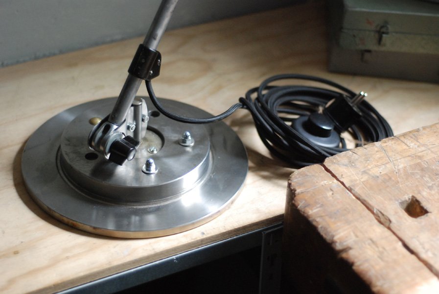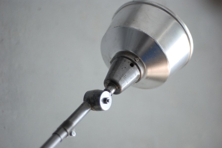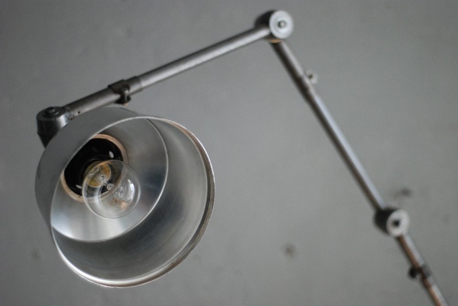 The design of this jointed lamp was developed by Curt Fischer, who worked on the idea of the ‘steerable light’ from approx. 1920 on. Even before the well known designs by Christian Dell or Marianne Brandt, Curt Fischer realized the idea of the so-called ‘steerable light’ with the all-round movable work lamp. The metal workshop at the Weimar Bauhaus was lit with Midgard lights, serving as an example to Bauhaus students, and was used later in Ilse and Walter Gropius’ master house livingroom at the Dessau Bauhaus.