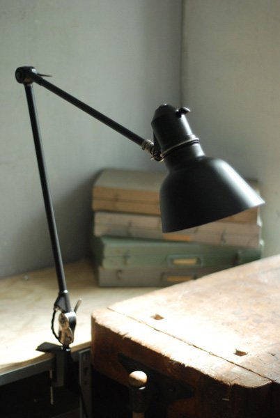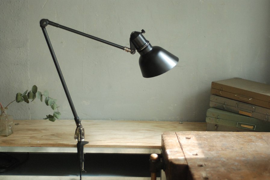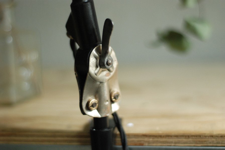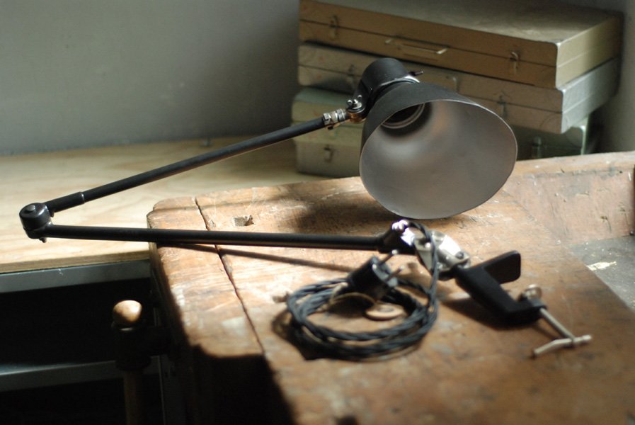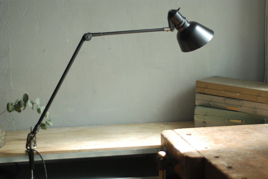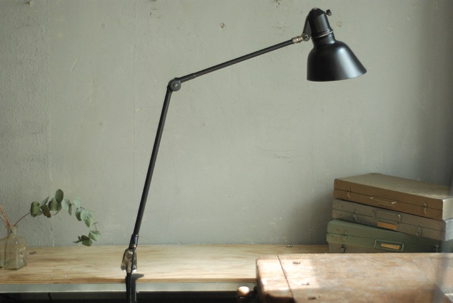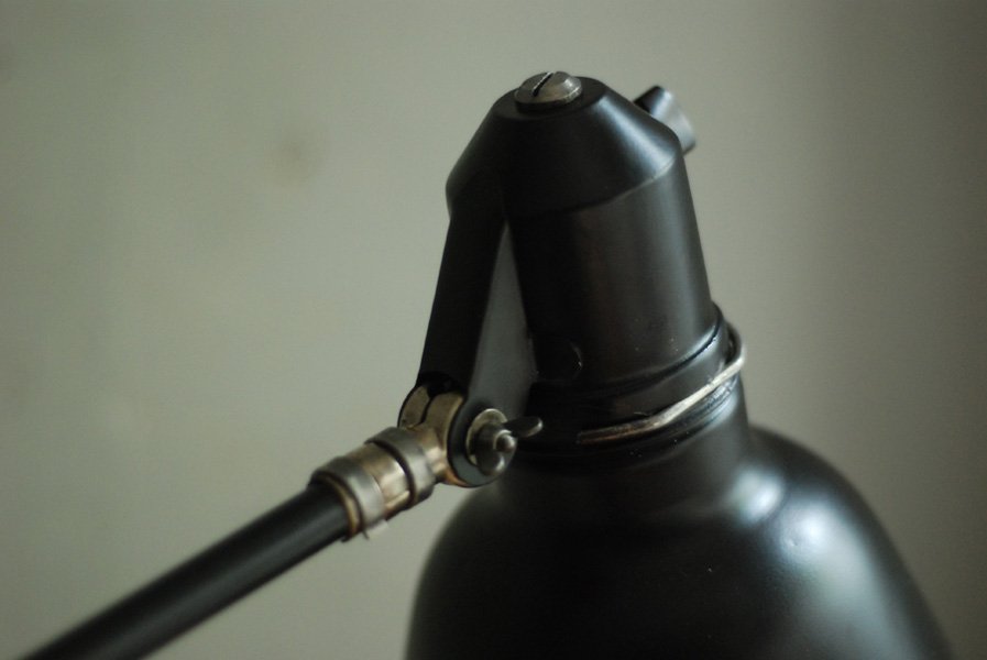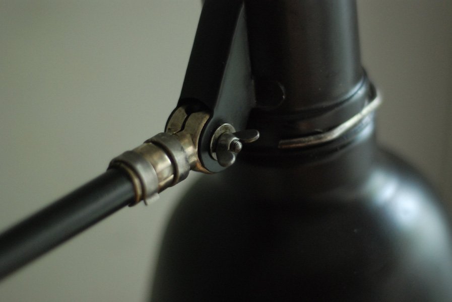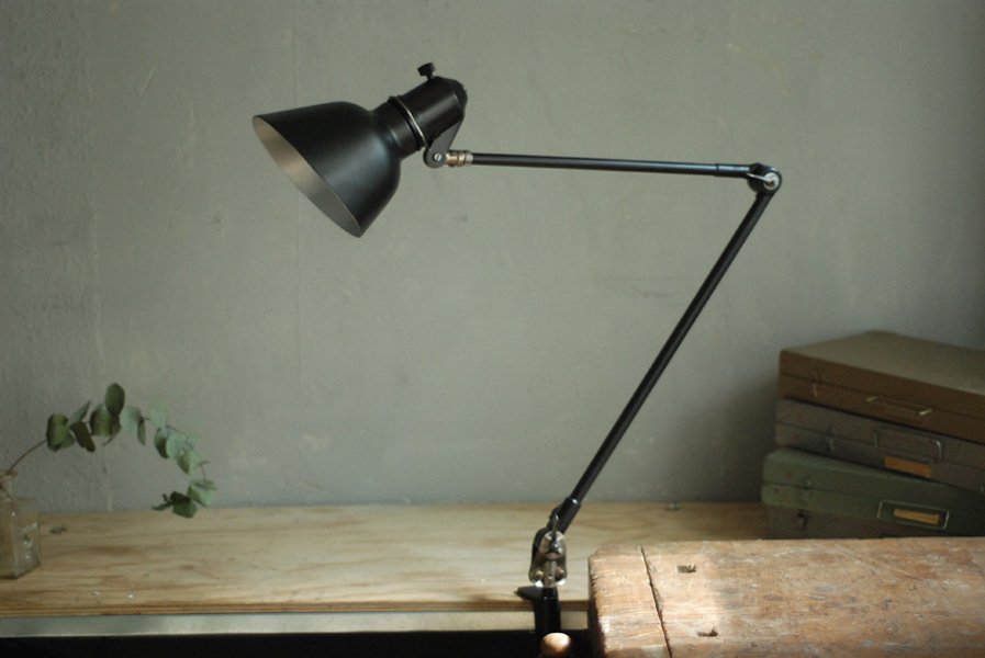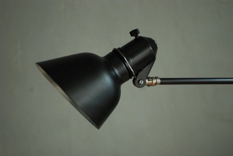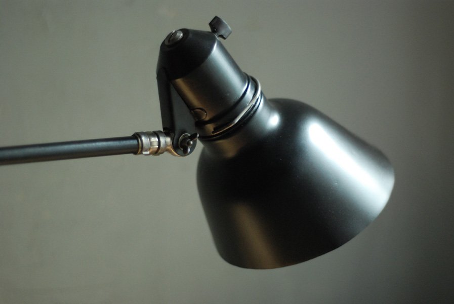 Sis early hinged lamp, mod. 34The Sis company (Sirius Schweinfurt) was a metal factory founded in 1924 by the clockmaker Erich Lang and his father Karl Lang. The company focused on producing bright-technical products, particularly the ‘steering light’, and became known for its high quality task lighting.