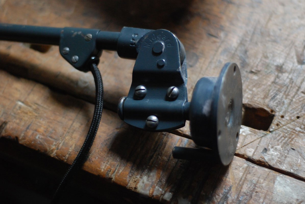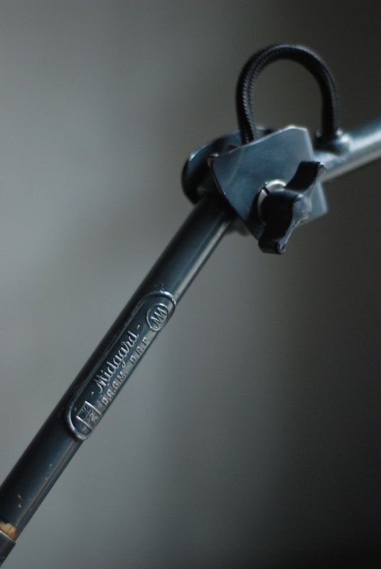 Der Entwurf dieser einzigartigen Gelenklampe mit Doppelgelenk stammt von Curt Fischer, der ab ca. 1920 an der Idee des „lenkbaren Lichtes“ gearbeitet hat. Noch vor den so bekannten Entwürfen von Christian Dell oder Marianne Brandt setzte Curt Fischer mit der allseitig beweglichen Arbeitsplatzleuchte die Idee des so genannten ‚lenkbaren Lichtes‘ um. Die Metallwerkstatt im Bauhaus in Weimar wurde mit Midgard-Leuchten erhellt und diente den Bauhaus-Studenten als Vorbild und ist später auch in die Wohnzimmereinrichtung von Ilse und Walter Gropius in deren Meisterhaus am Dessauer Bauhaus belegbar.