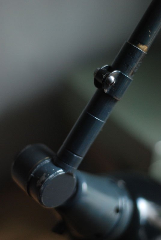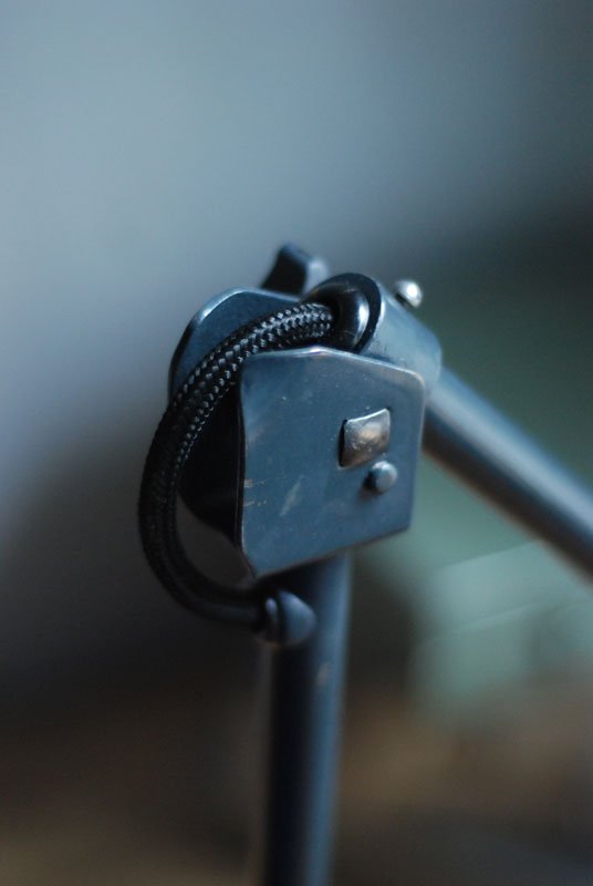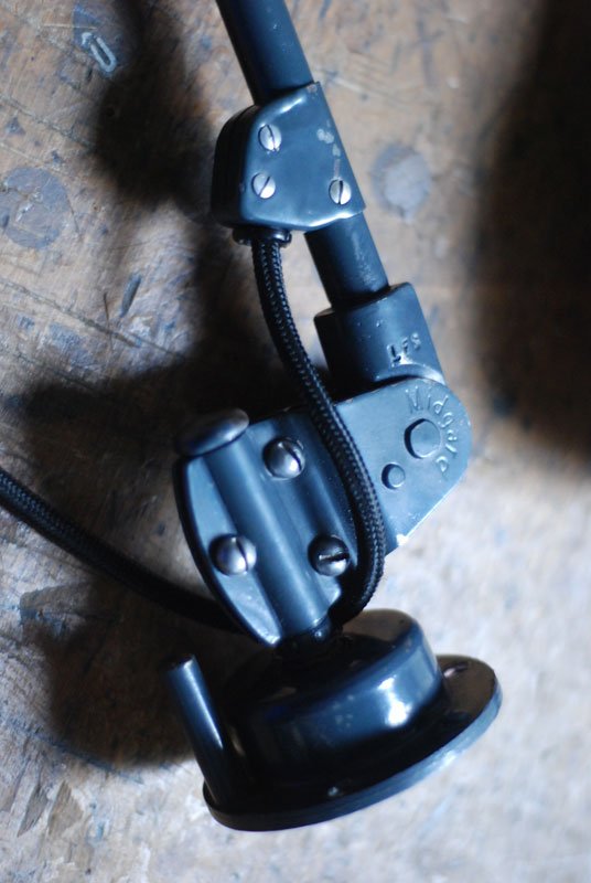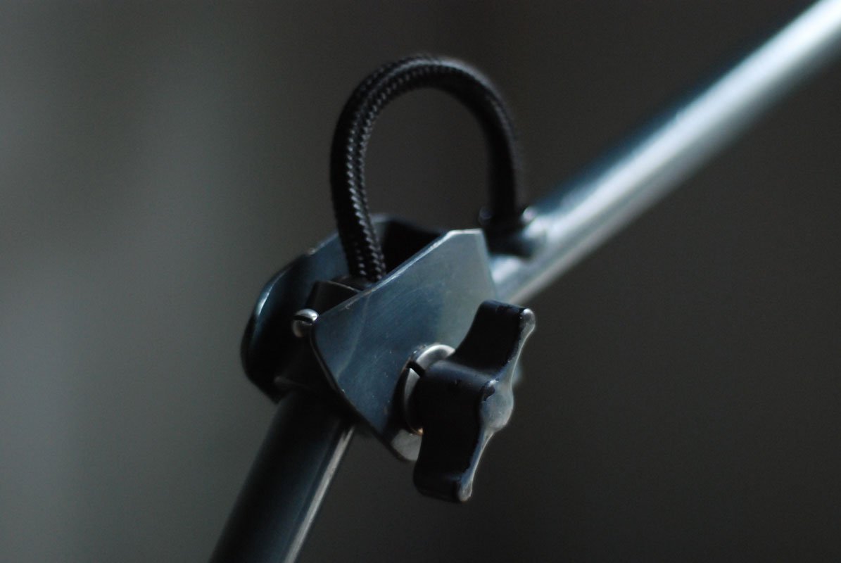 Die runde Halterung ist zur Verschraubung auf die Tischplatte oder auf die Wand (Beachten Sie dass dadurch eine Gelenksrichtung verloren geht) gedacht. Der Stift der originalen Halterung ist lose, eine Erszatshalterung wird mitgeliefert (siehe Bild).