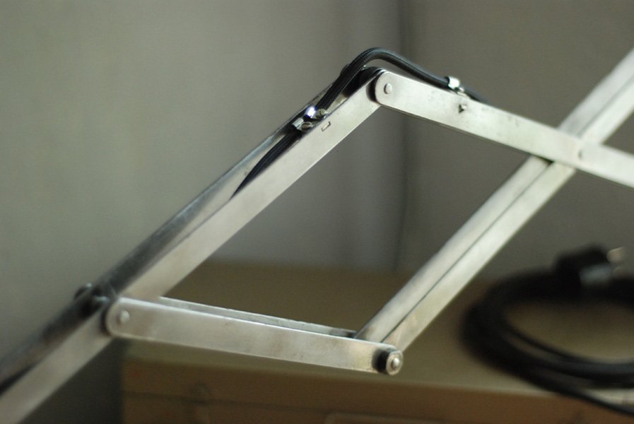 Alte Scherenlampe Midgard D.R.G.M. D.R.P. Ausl. Pat. mit Emailleschirm