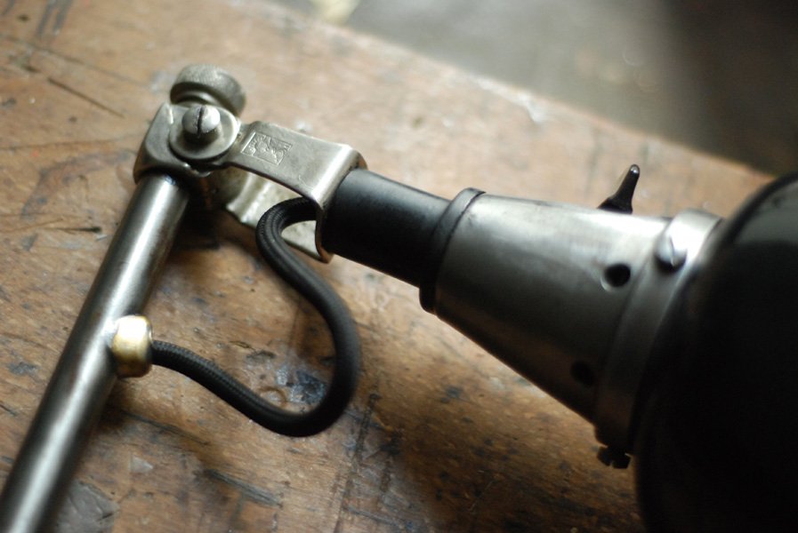 Die Elektrik wurde dreiadrig erneuert und generalüberholt. Es wurde ein schwarzes, stoffummanteltes Kabel verwendet. Die Leuchte wird mittels eines Drehschalters an der Fassung betätigt.