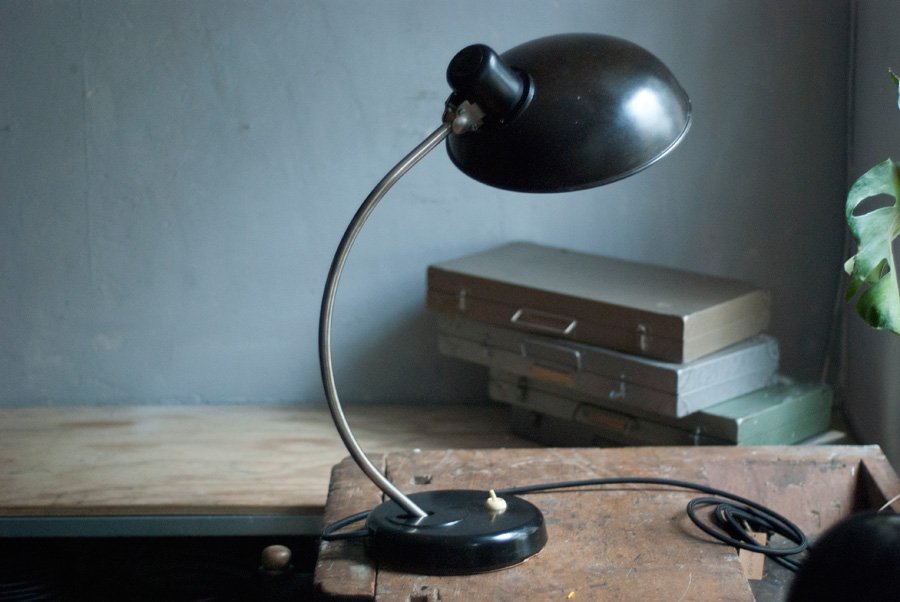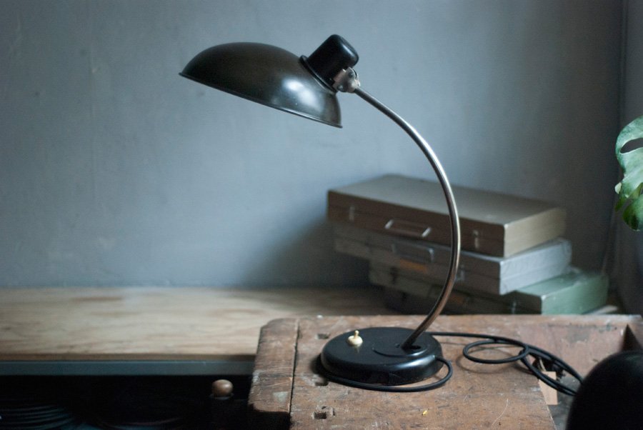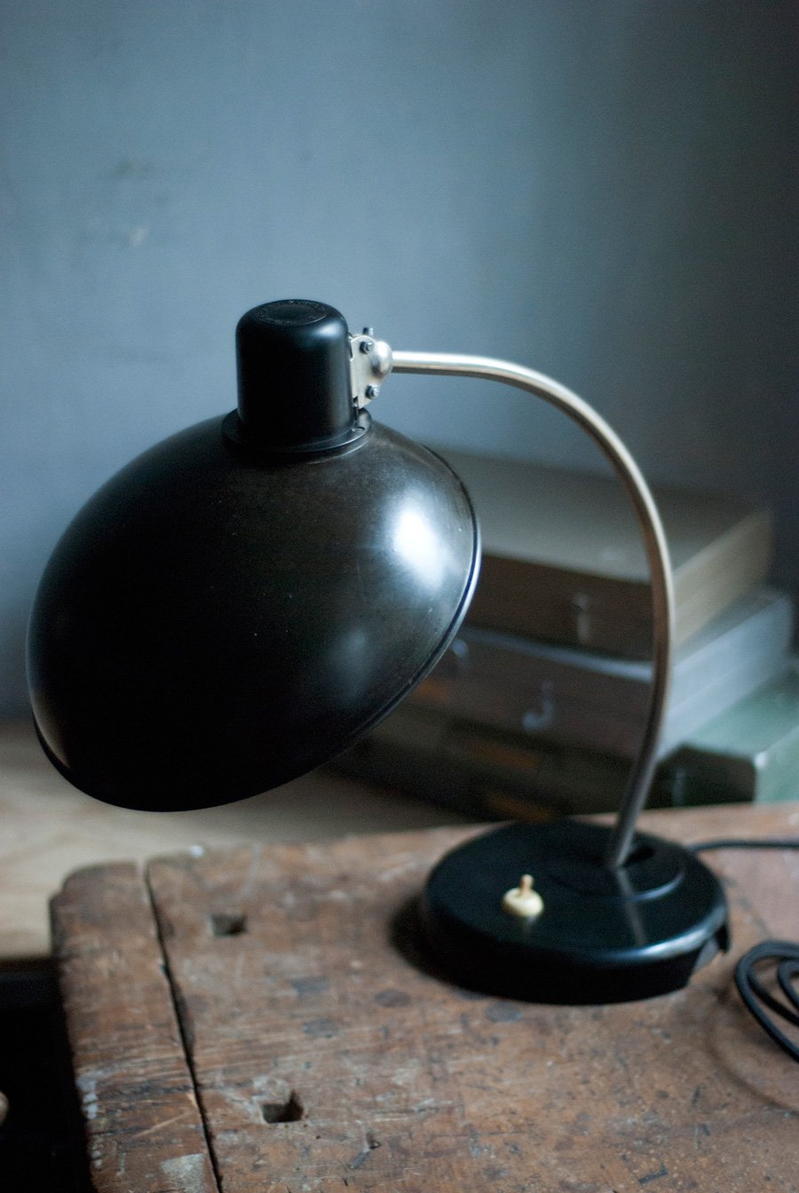Grosse alte schwarze Schreibtischleuchte Helion Arnstadt aus Bakelit.