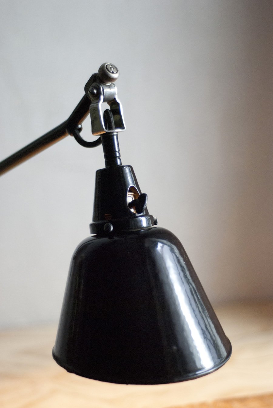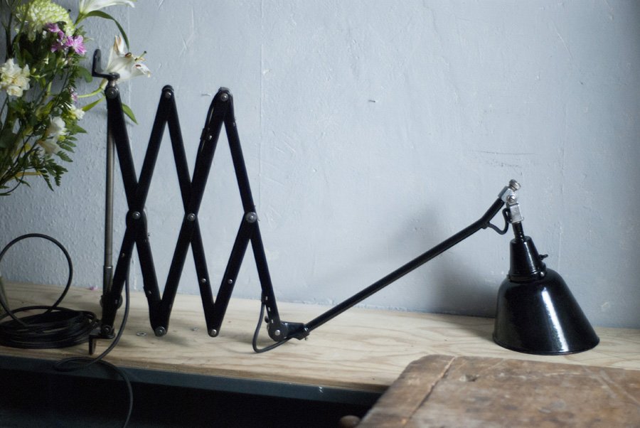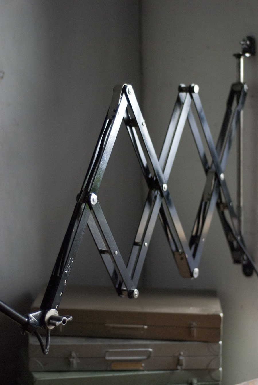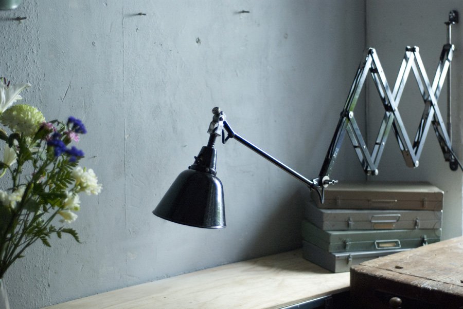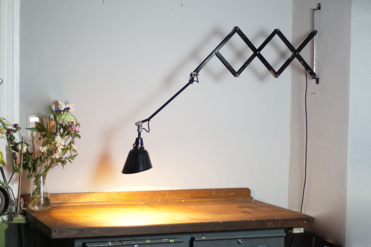 Der Entwurf dieser einzigartigen Scherenlampe mit Doppelgelenk stammt von Curt Fischer, der ab ca. 1920 an der Idee des „lenkbaren Lichtes“ gearbeitet hat. Noch vor den so bekannten Entwürfen von Christian Dell oder Marianne Brandt setzte Curt Fischer mit der allseitig beweglichen Arbeitsplatzleuchte die Idee des so genannten ‚lenkbaren Lichtes‘ um. Die Metallwerkstatt im Bauhaus in Weimar wurde mit Midgard-Leuchten erhellt und diente den Bauhaus-Studenten als Vorbild und ist später auch in die Wohnzimmereinrichtung von Ilse und Walter Gropius in deren Meisterhaus am Dessauer Bauhaus belegbar.