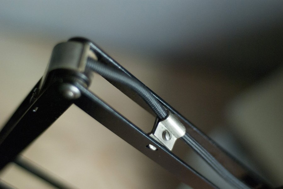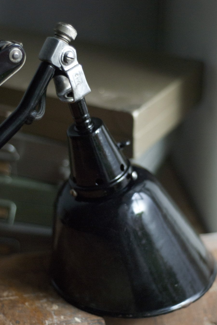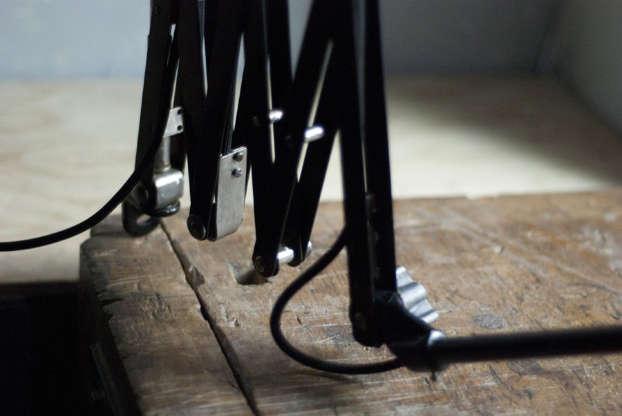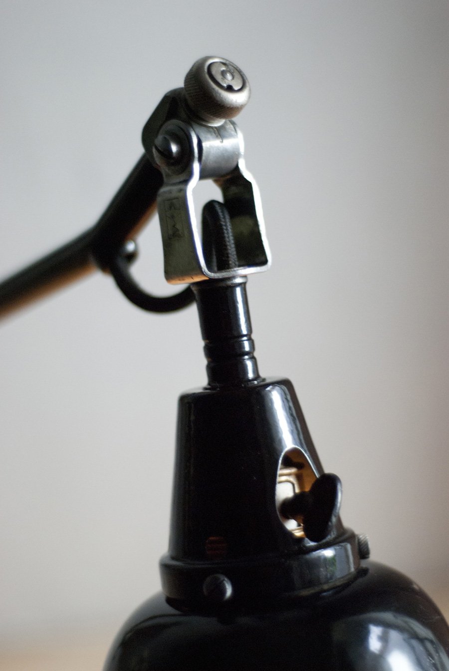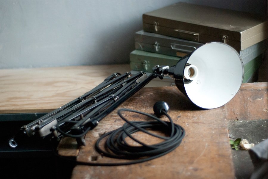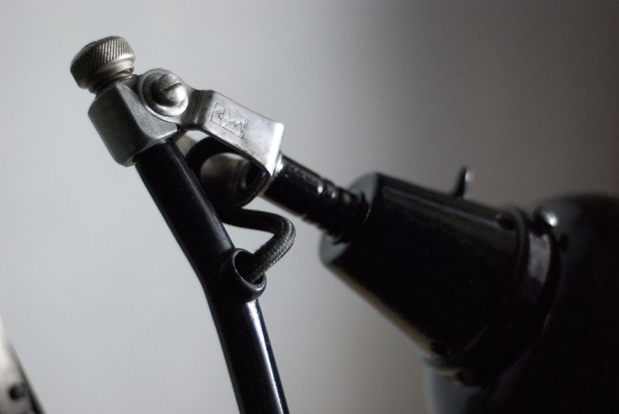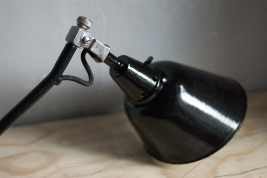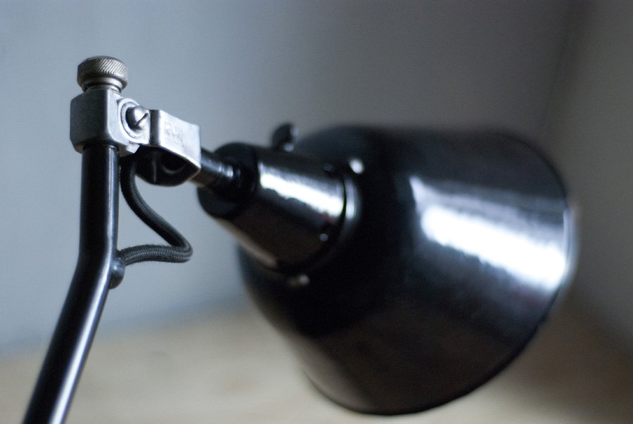 Die Elektrik wurde dreiadrig erneuert und generalüberholt. Es wurde ein schwarzes, stoffummanteltes Kabel verwendet. Die Leuchte wird mittels eines Drehschalters an der Messing Fassung betätigt.
