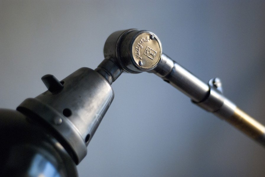 Der Entwurf dieser einzigartigen Gelenklampe stammt von Curt Fischer, der ab ca. 1920 an der Idee des „lenkbaren Lichtes“ gearbeitet hat. Noch vor den so bekannten Entwürfen von Christian Dell oder Marianne Brandt setzte Curt Fischer mit der allseitig beweglichen Arbeitsplatzleuchte die Idee des so genannten ‚lenkbaren Lichtes‘ um. Die Metallwerkstatt im Bauhaus in Weimar wurde mit Midgard-Leuchten erhellt und diente den Bauhaus-Studenten als Vorbild und ist später auch in die Wohnzimmereinrichtung von Ilse und Walter Gropius in deren Meisterhaus am Dessauer Bauhaus belegbar.