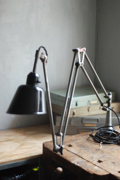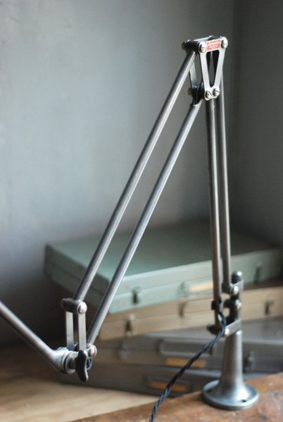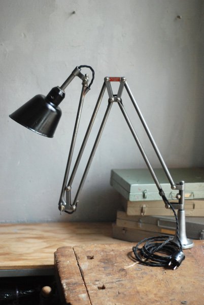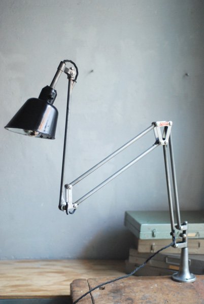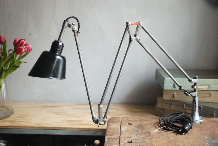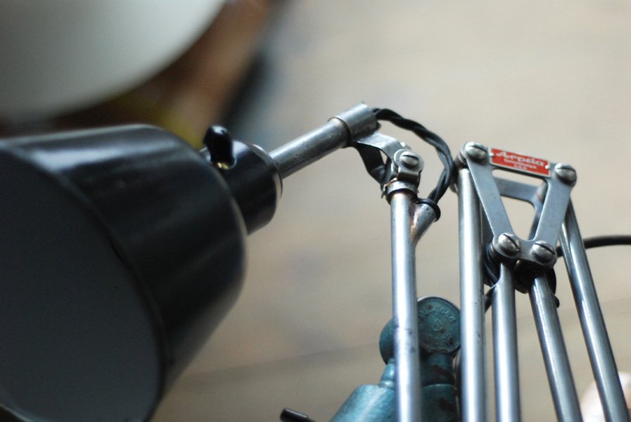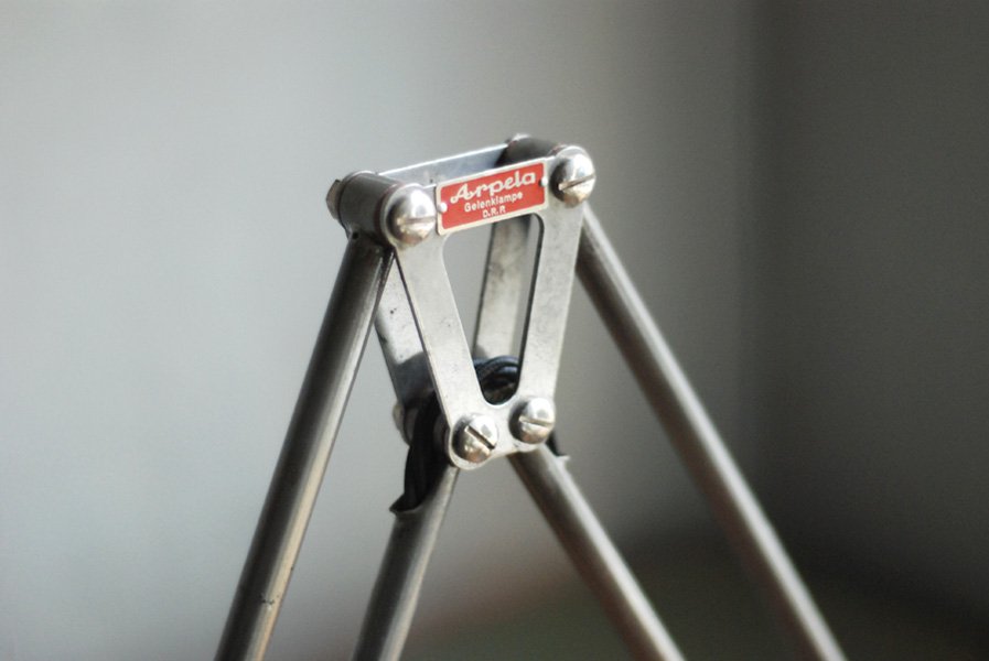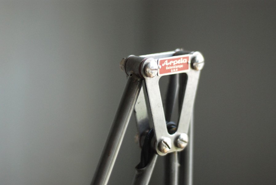 Die Lampe ist mit „Arpela Gelenklampe D.R.P.“ markiert.