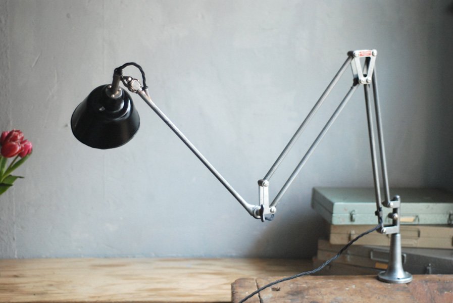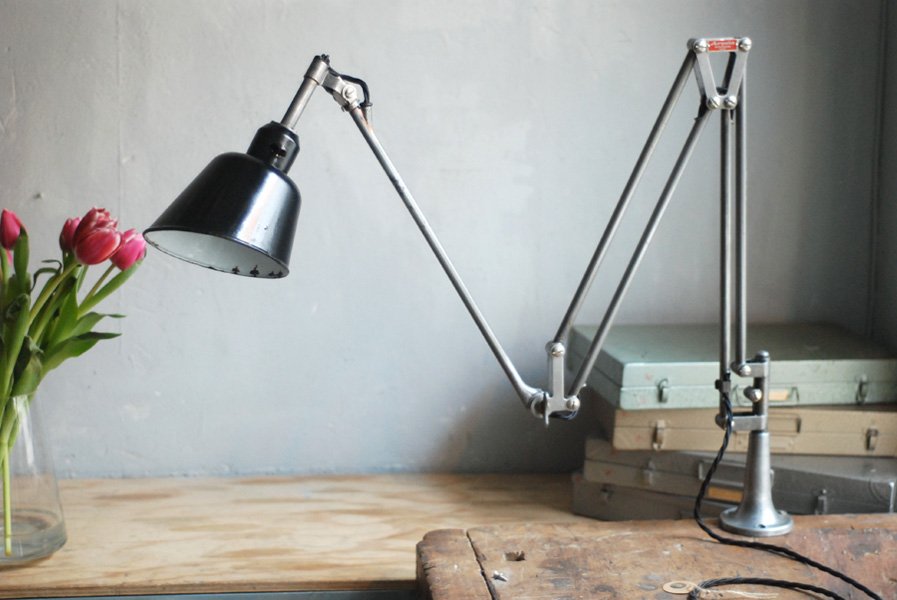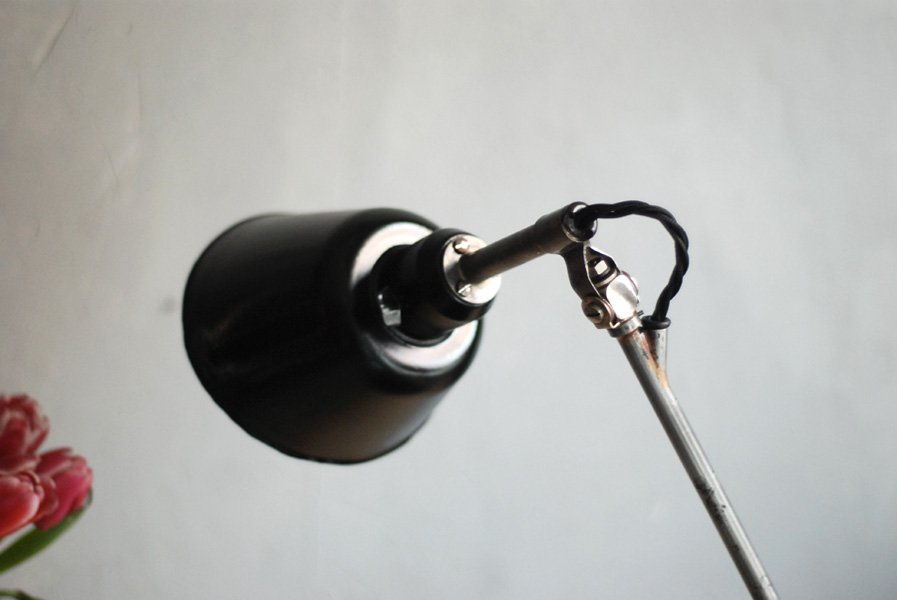 Der gebrauchte Zustand weist leichte altersbedingte Spuren und eine schöne Patina auf. Die Technik der Leuchte funktioniert einwandfrei. Sie hält alle Positionen.