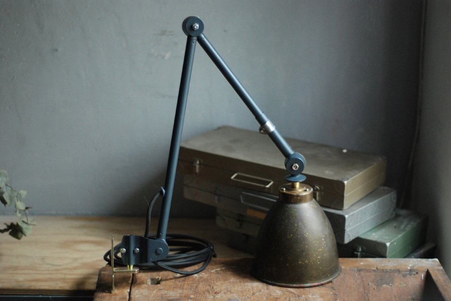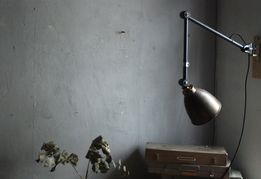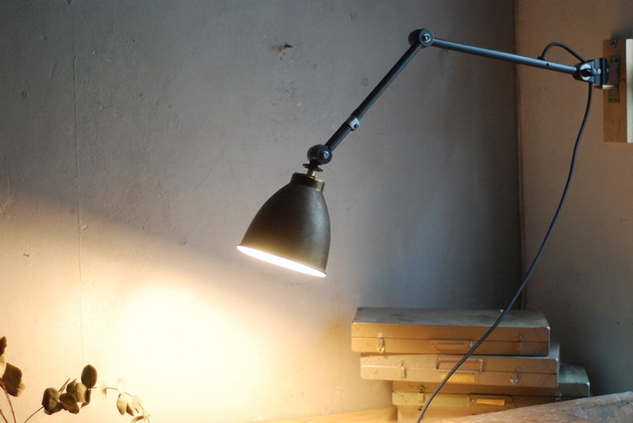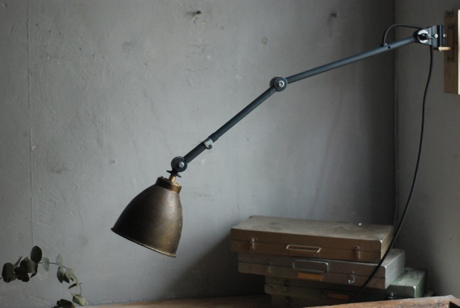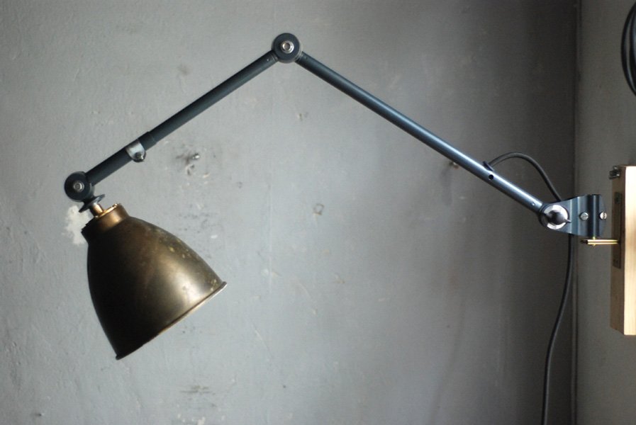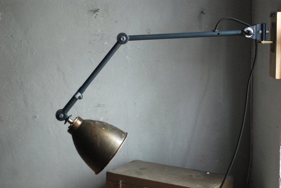 Gelenkleuchte Midgard aus der DDR Zeit mit Messingreflektor eines anderen Herstellers.