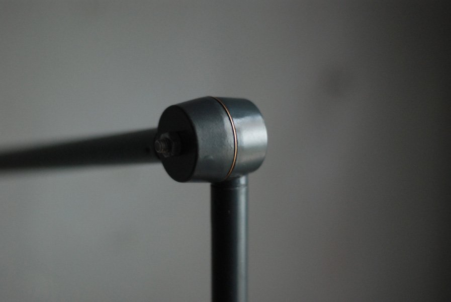 Nach der kompletten Zerlegung und sorgsamen Reinigung wurden die Elemente der Leuchte entlackt, entrostet, versiegelt und neu aufgebaut. Alle Einzelteile wurden entrostet, poliert, geölt.