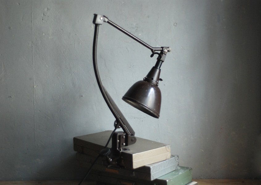 Elegante alte Gelenklampe Midgard 114 mit brauner Originallackierung.