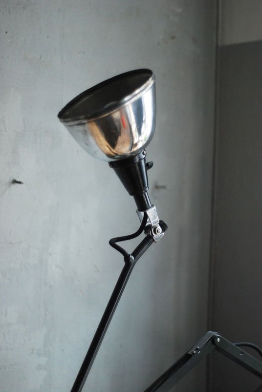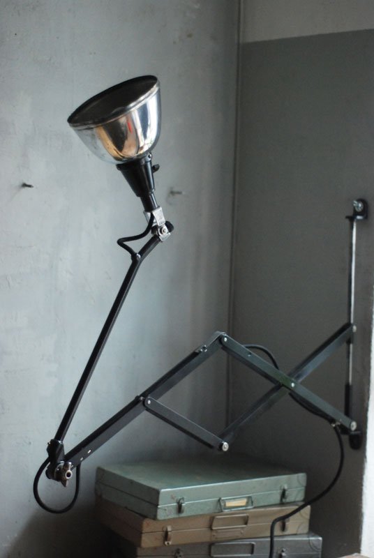 Grosse schwarze Scherenlampe Midgard Mod.112 mit poliertem Reflektor