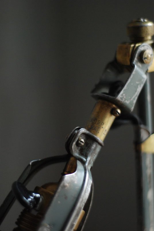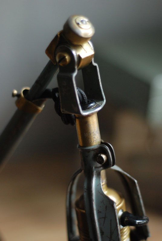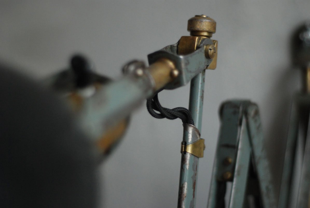 Wundeschöne seltene frühe Scherenlampe Midgard in Originalerhalt mit schrägem Reflektor aus Aluminium, Mod.112.