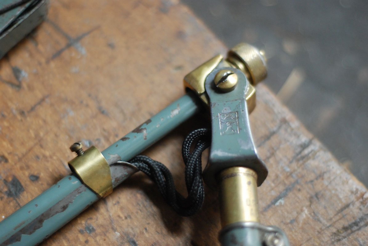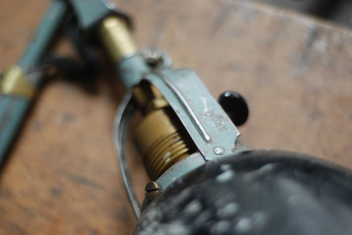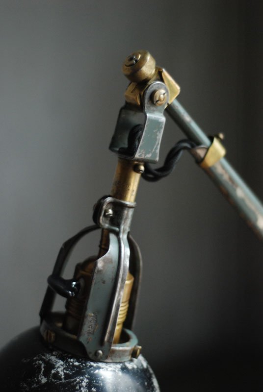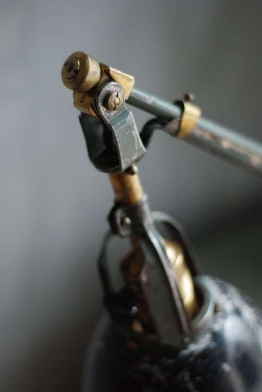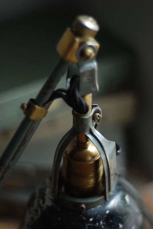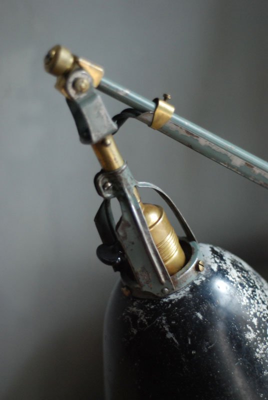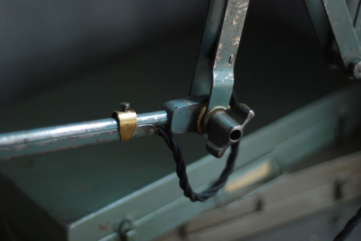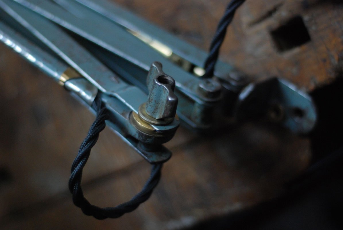 Die Elektrik wurde dreiadrig erneuert und generalüberholt. Es wurde ein schwarzes, verseiltes stoffummanteltes Kabel verwendet. Die Leuchte wird mittels eines Drehschalters an der schoenen Fassung betätigt.