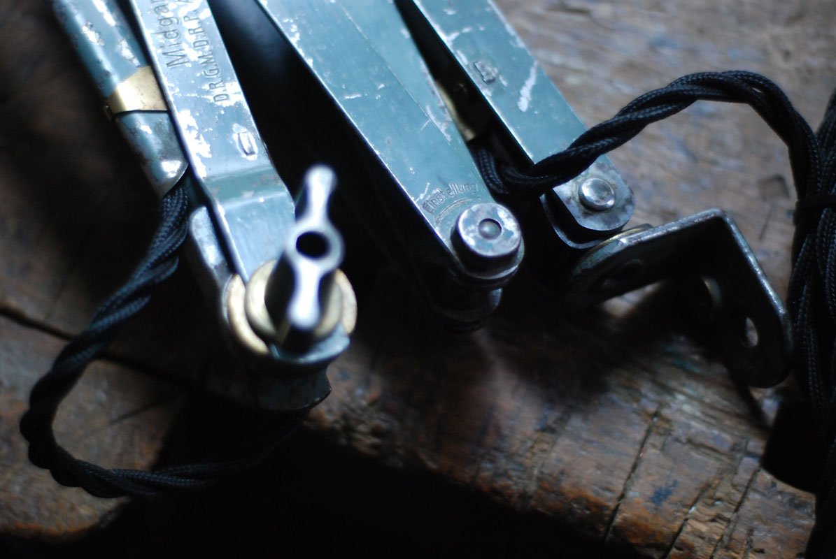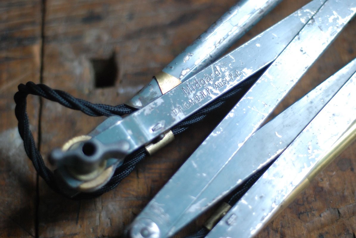 Geprägt ist die Leuchte mehrmals mit MIDGARD D.R.G.M. D.R.P. Ausl. Pat. ,  mit dem Midgard Logo, mit „Einstellung“ auf der Schere und DRGM auf der Krone. Der Schirm ist ebenfalls mit ‚Midgard‘ markiert.