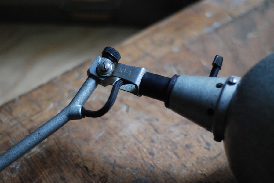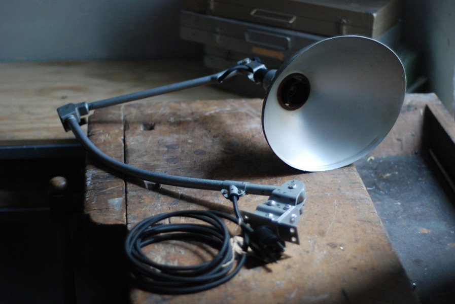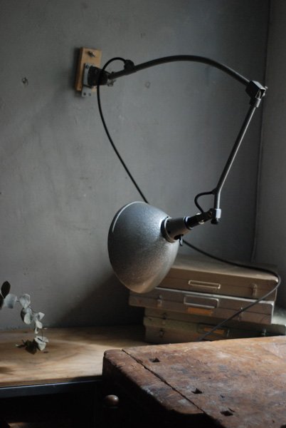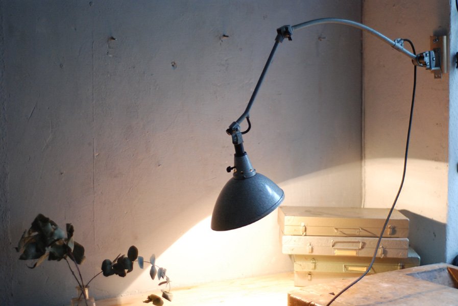 Schöne Gelenklampe Midgard 126 mit Originallackierung und breitem Reflektor