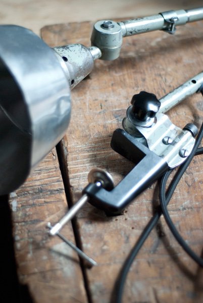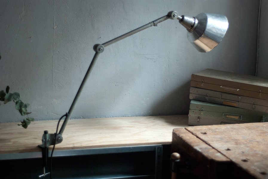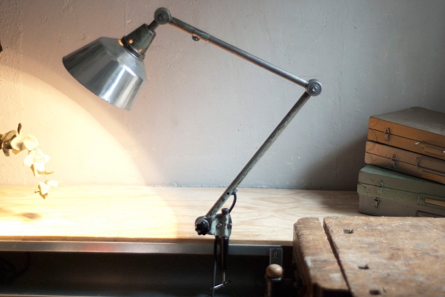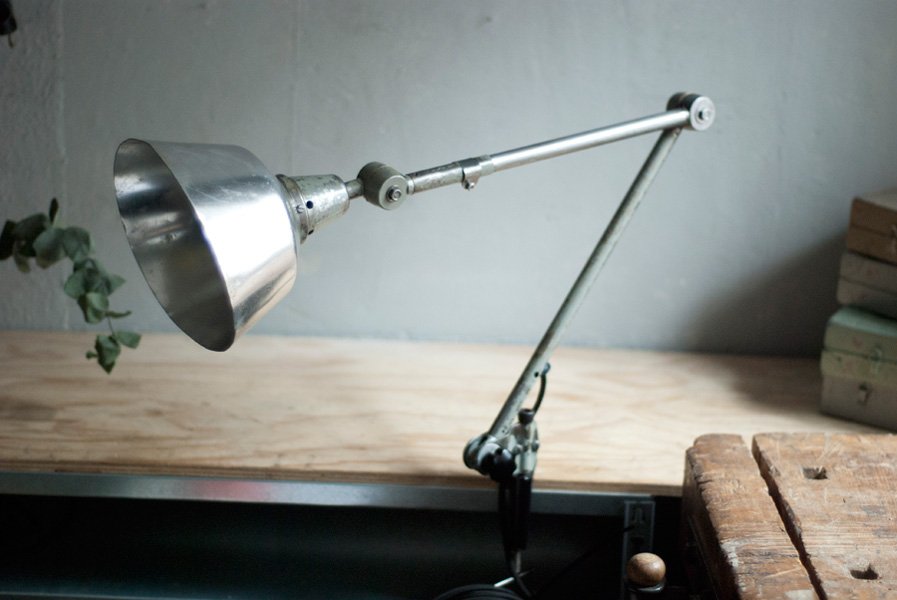Gelenkleuchte Midgard DDR mit Patina und Klemmfuss