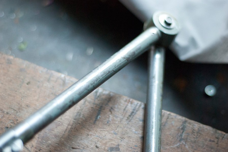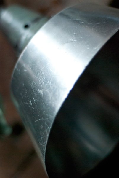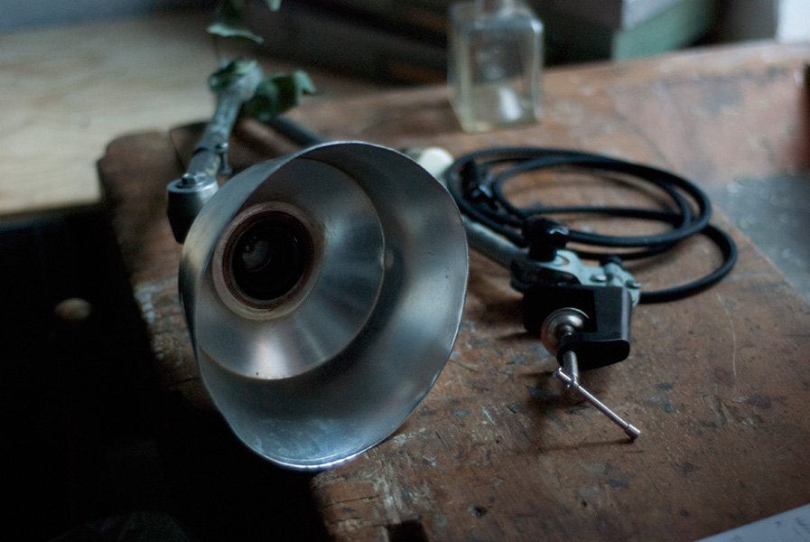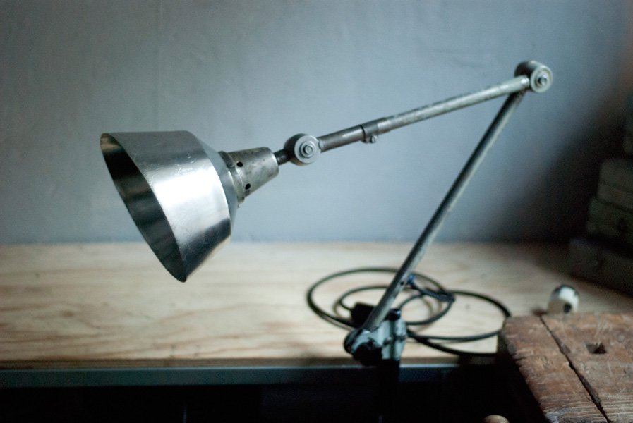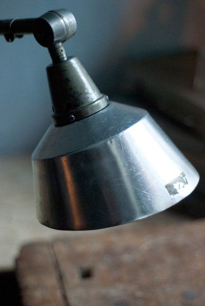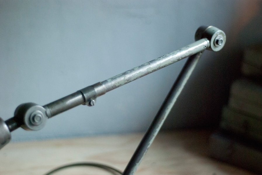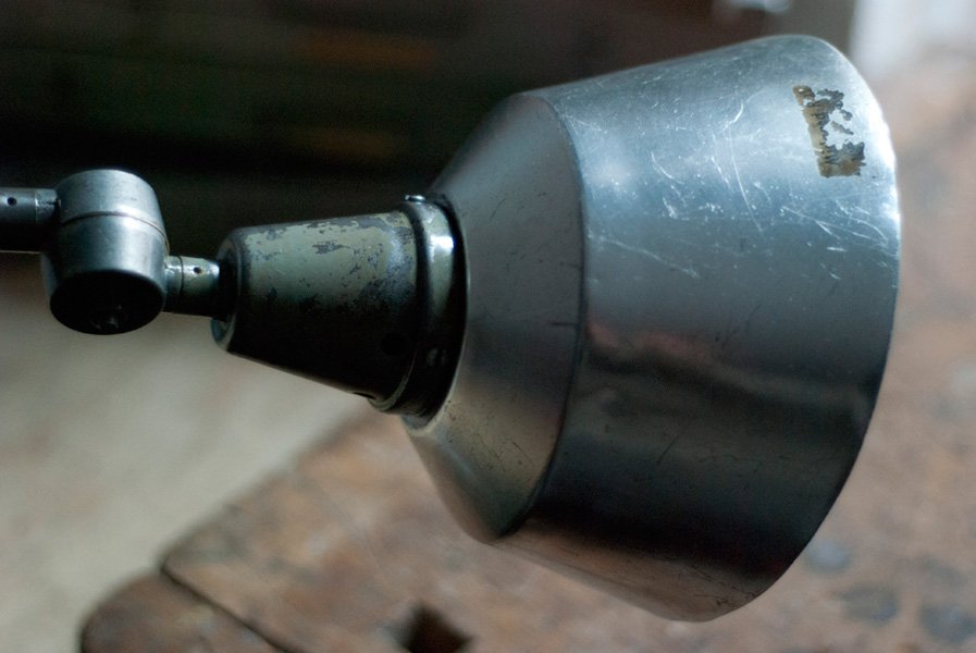 Nach der kompletten Zerlegung und sorgsamen Reinigung wurden die Elemente der Leuchte partiell entlackt, entrostet, versiegelt und neu aufgebaut.