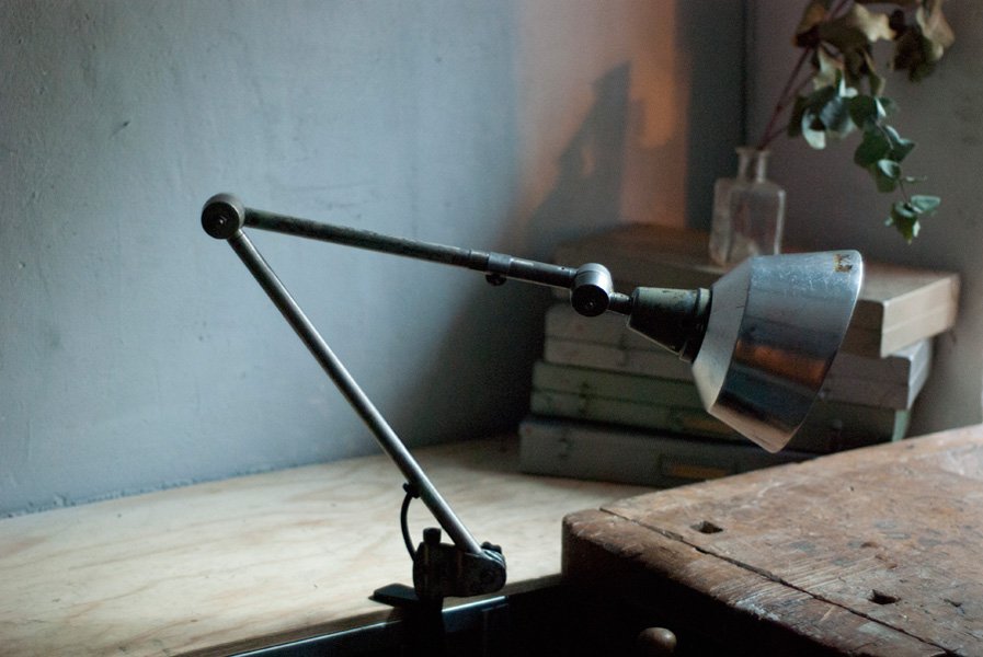 Gelenkleuchte Midgard mit Patina und Klemmfuss