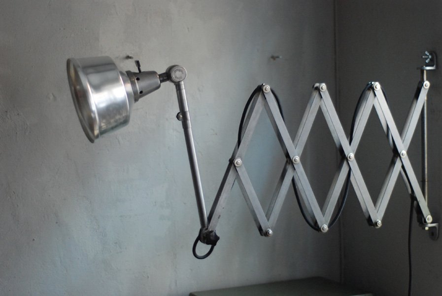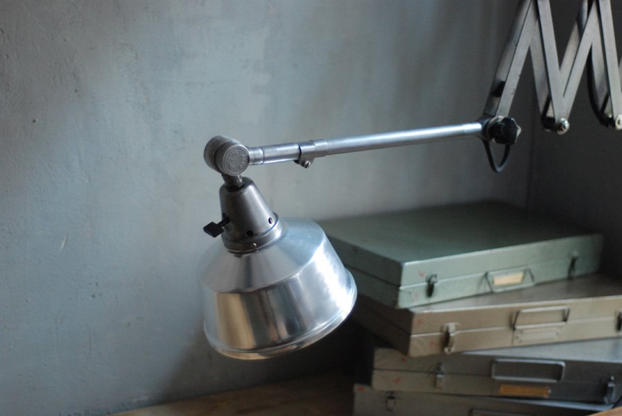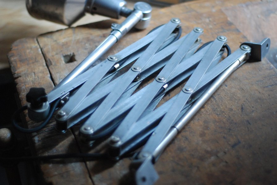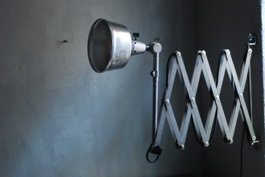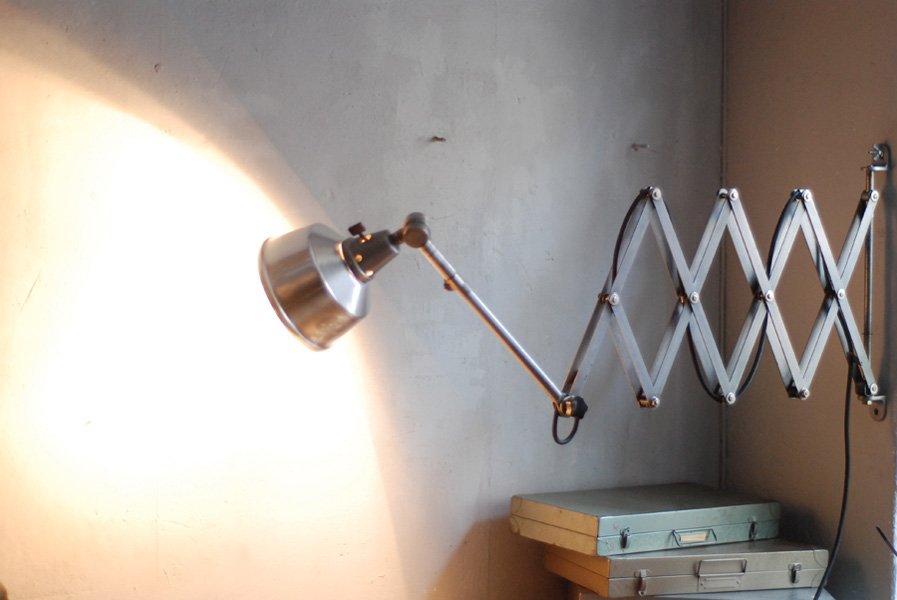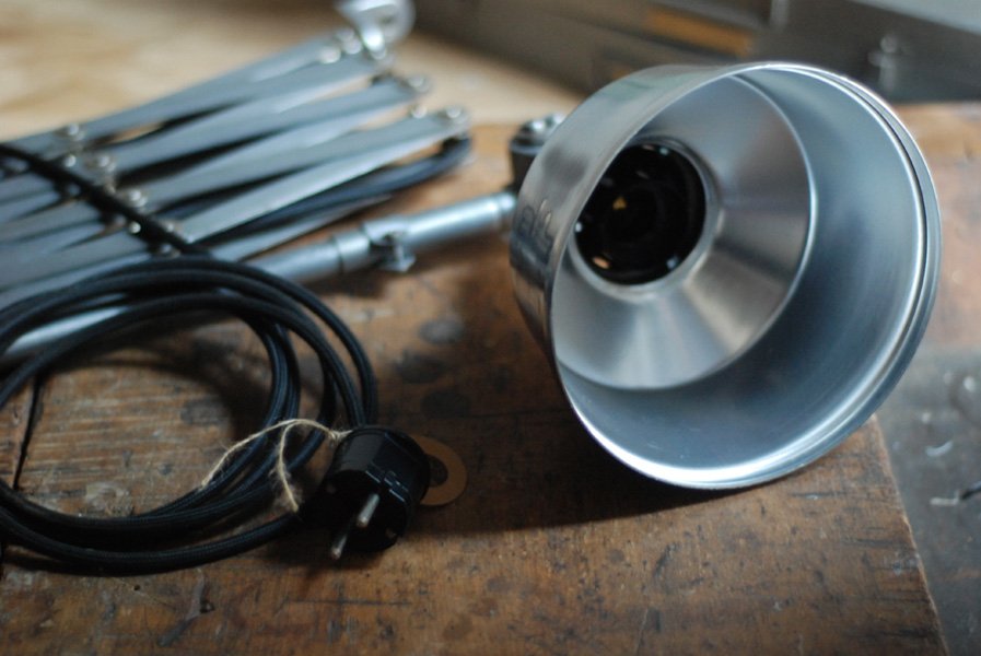 Die Grösste Scherenlampe Midgards aus der DDR Zeit in Stahloptik mit Reflektor aus Aluminium