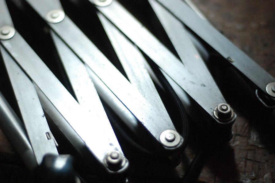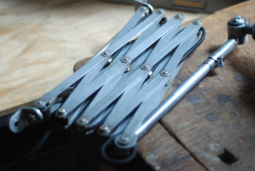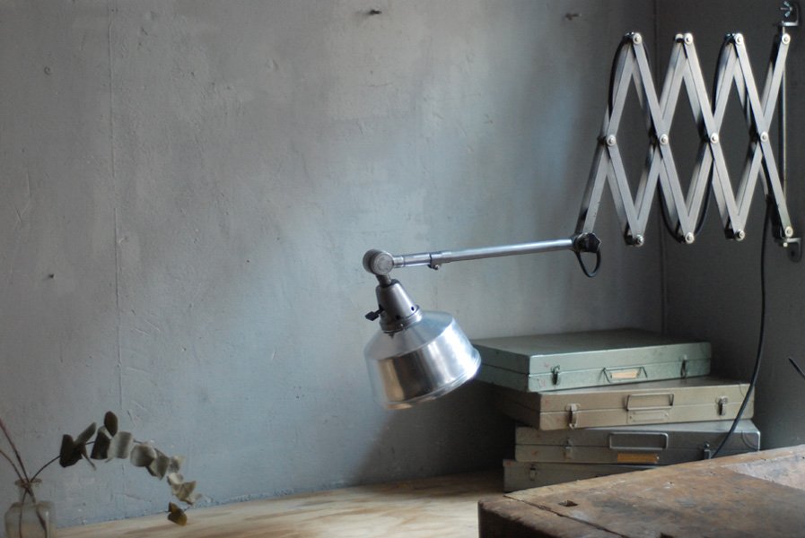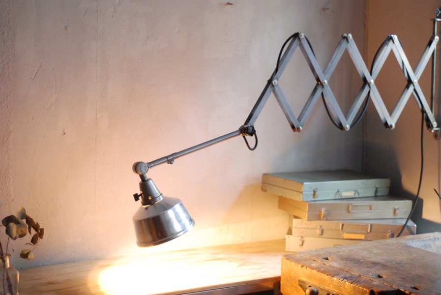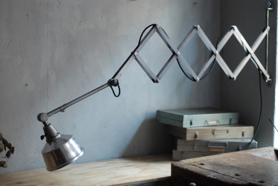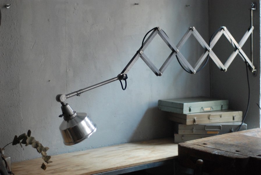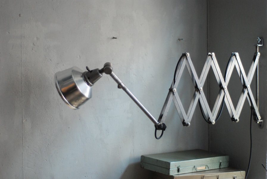 Die Grösste Scherenlampe Midgards aus der DDR Zeit in Stahloptik mit Reflektor aus Aluminium