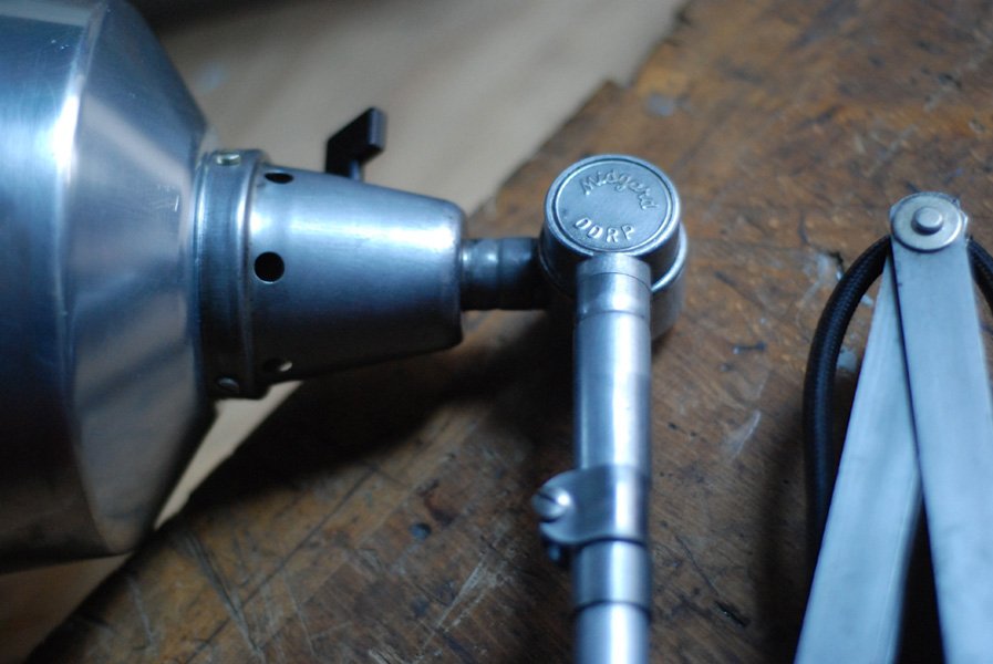 Nach der kompletten Zerlegung und sorgsamen Reinigung wurden die Elemente der Leuchte entlackt, poliert, gebürstet, versiegelt und neu aufgebaut. Alle Einzelteile wurden entrostet, poliert, geölt.