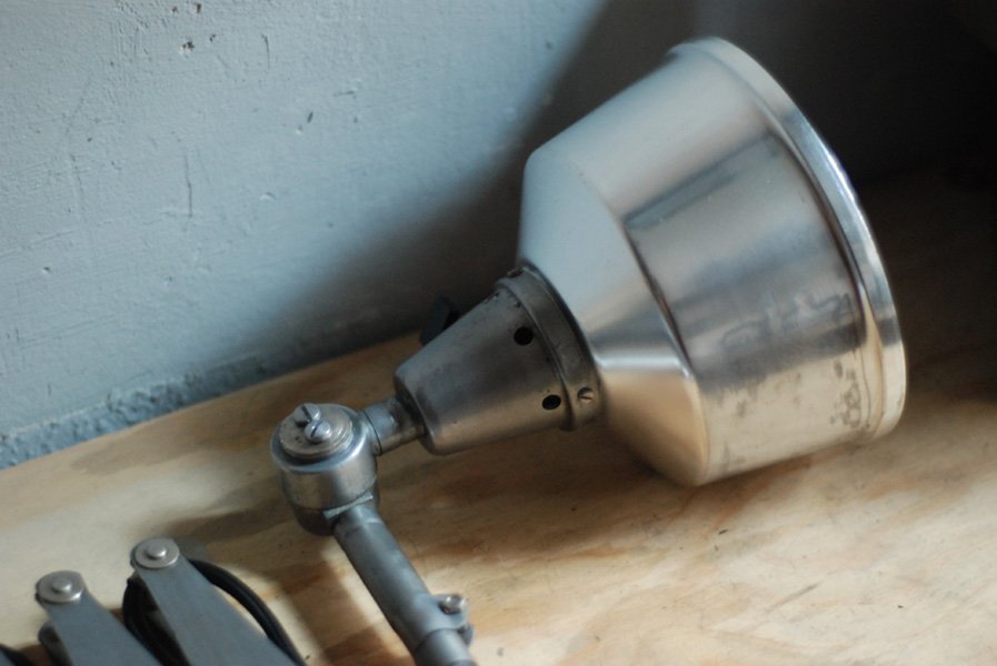 Die Lampe befindet sich in einem gebrauchten sehr gutem Zustand, weist leichte Alterspuren und eine schöne Patina auf. Der Reflektor aus Aluminium ist in einem sehr guten Zustand und weist leichte Alterspuren und Gebrauchspuren auf.