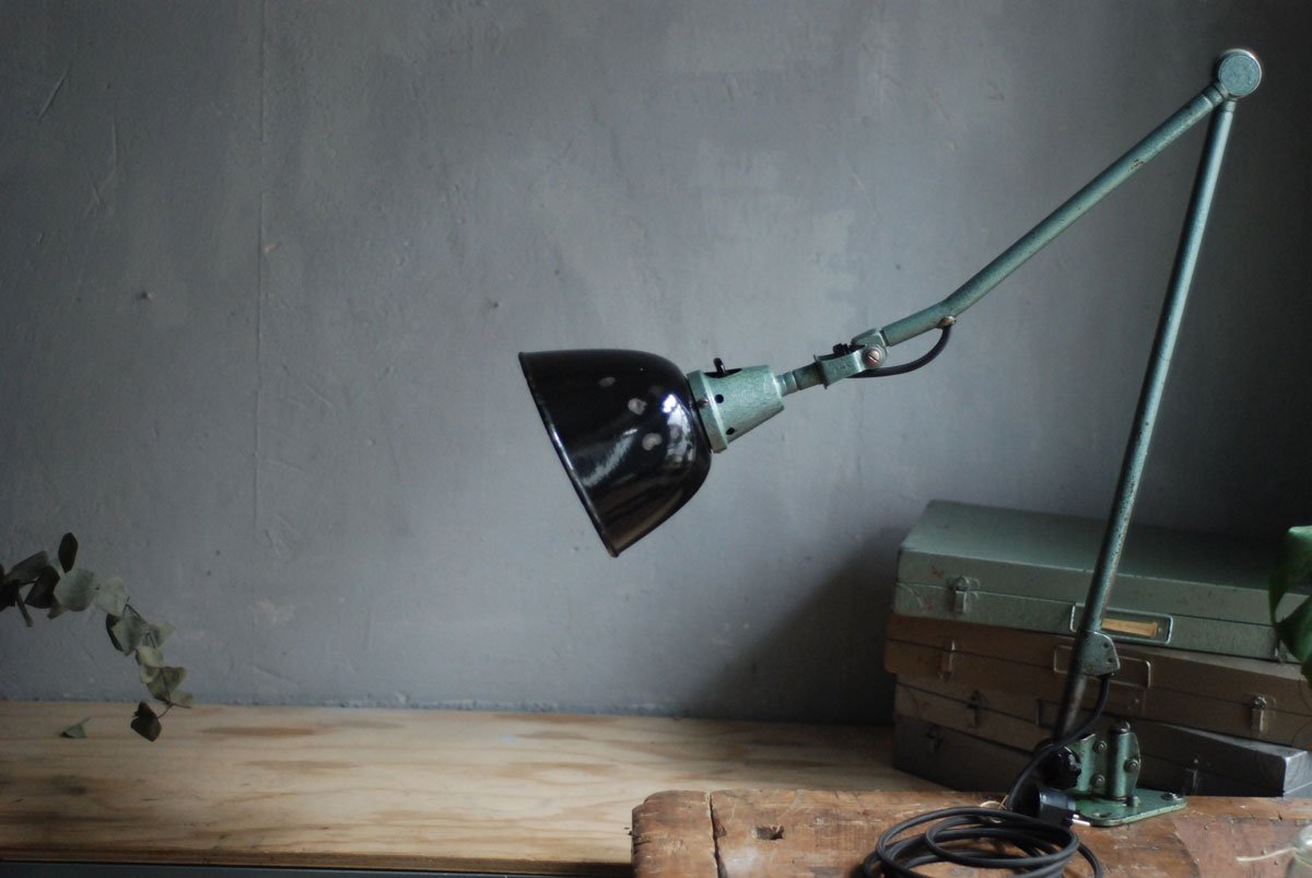 Doppeltischarm Midgard mit Originallackierung und emaillertem Reflektor.