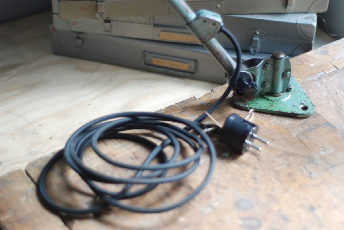 Die Leuchte wird mittels des Drehschalters aus Bakelit am Kopf betätigt. Die Technik der Leuchte funktioniert einwandfrei. Die Gelenke sind leichtgängig.